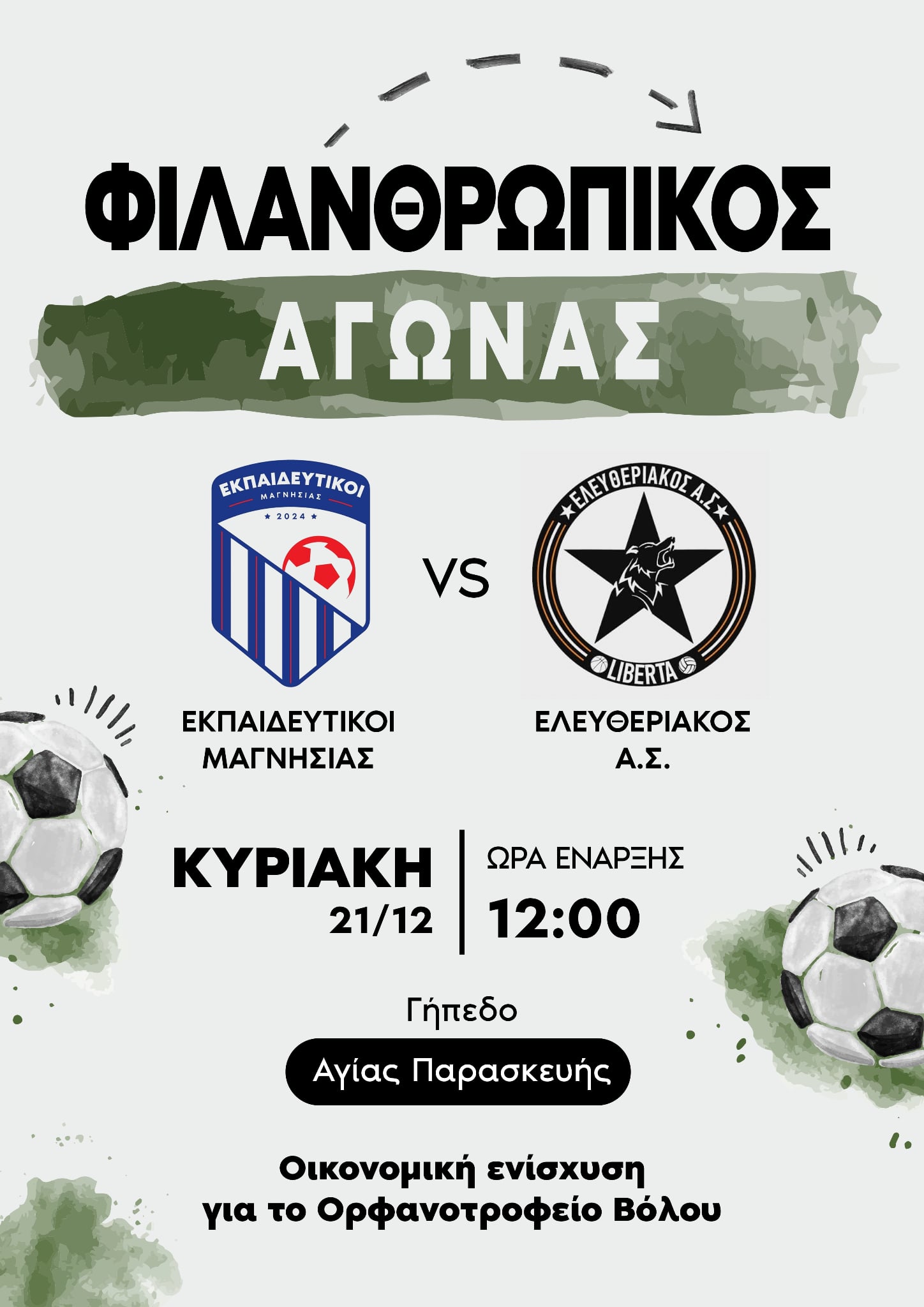 Φιλανθρωπικός ποδοσφαιρικός αγώνας για τη στήριξη του Ορφανοτροφείου Βόλου