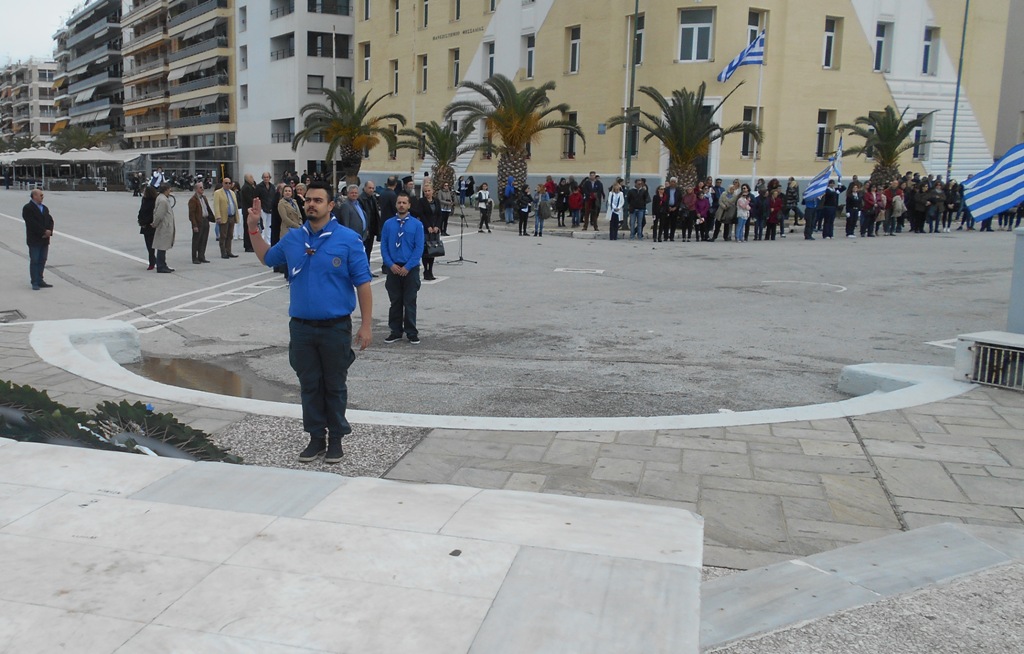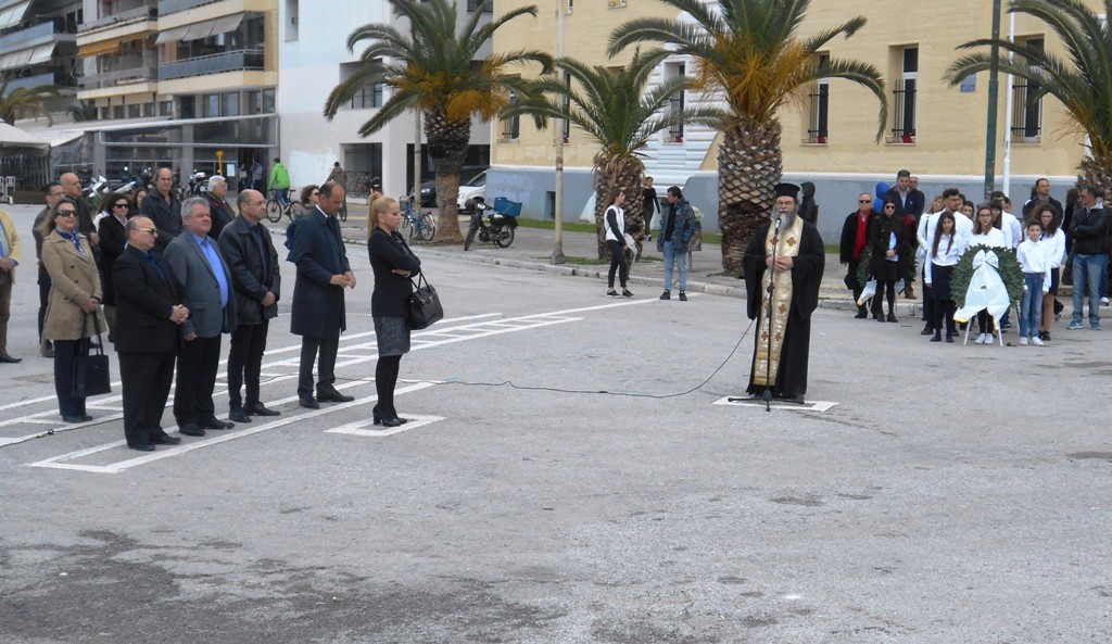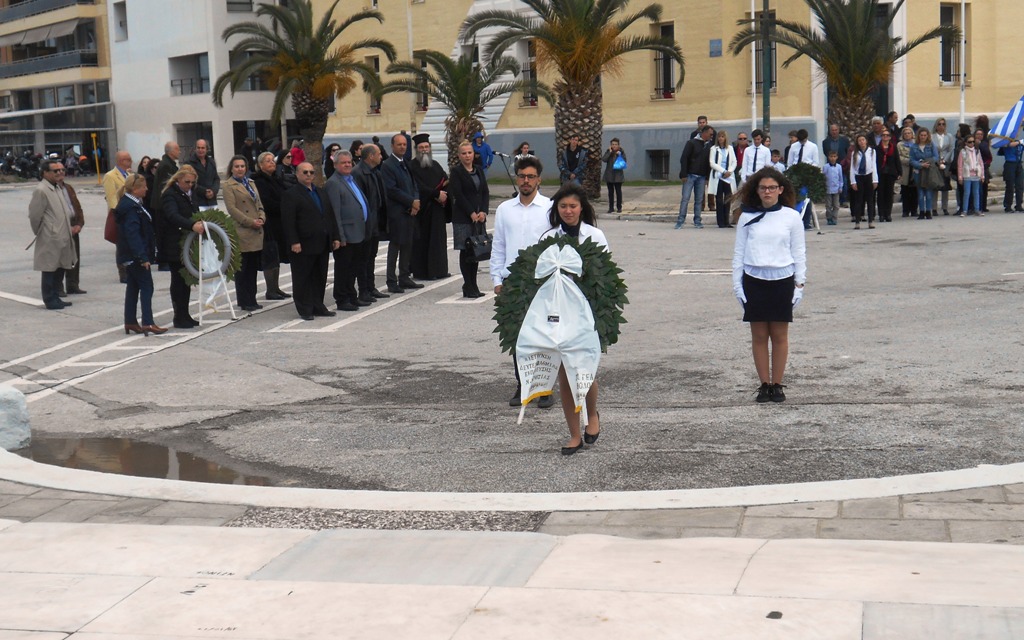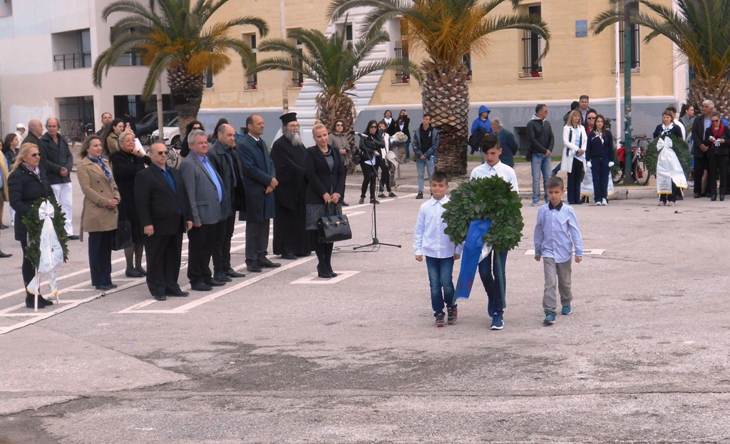 Αρχική έγινε επιμνημόσυνη δέηση, ακολούθησε ο Εθνικός Ύμνος και στη συνέχεια μαθητές των σχολείων, της «Κιβωτού του Κόσμου» και προσκόπων κατέθεσαν στεφάνια.