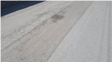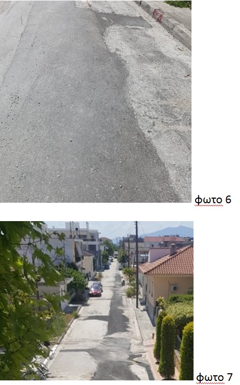 4) Σε τοπικές επισκευές του οδοστρώματος (patch) που έχει προβεί ο εργολάβος παρουσιάζονται εκ νέου λακκούβες επιπέδου μέσης έως υψηλής σοβαρότητας. (φωτο 8)