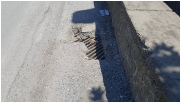 5) Τέλος, υπάρχουν φρεάτια ομβρίων τα οποία είναι επικαλυμμένα με υλικά πληρώσεως και εμποδίζουν την ομαλή απορροή των υδάτων, ενώ σε κάποιες περιπτώσεις απαιτείται ανύψωση των φρεατίων καθώς παρουσιάζονται υψομετρικές διαφορές με την επιφάνεια του δρόμου (ενδεικτικά φωτο 9).