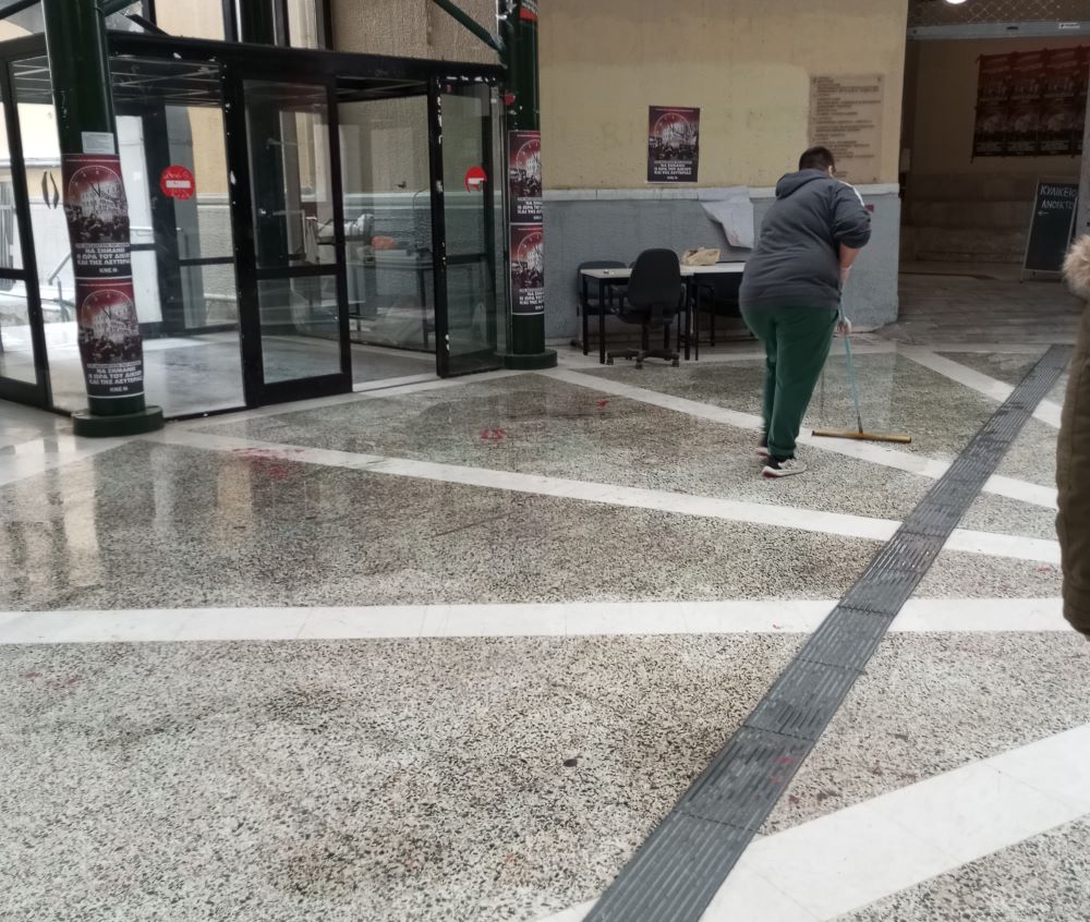 Τα νερά που συγκεντρώθηκαν σε όλο τον χώρο τελικά απομακρύνθηκαν από το συνεργείο καθαρισμού μέχρι τις 9.45 και επανήλθαν οι κανονικοί ρυθμοί.