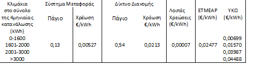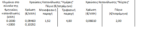 Κόστος ηλεκτρικής ενέργειας ΔΕΗ. Οικιακό Τιμολόγιο Γ1 και Νυχτερινό Τιμολόγιο Γ1Ν.