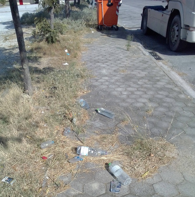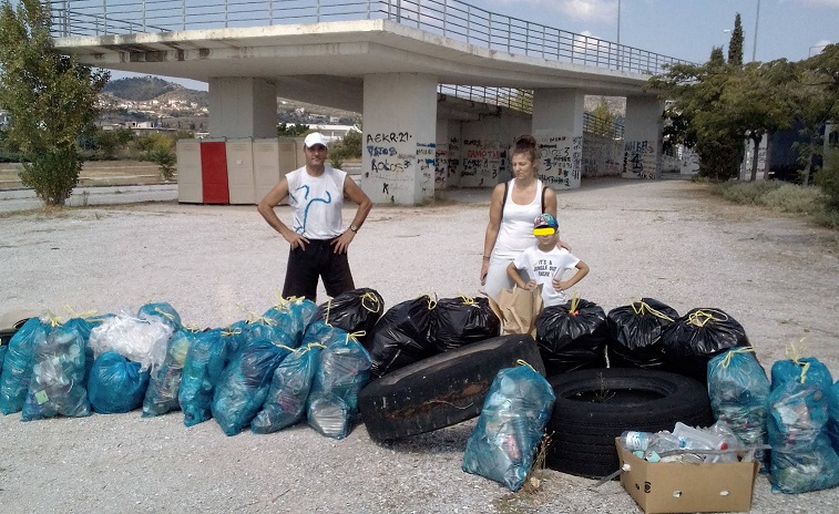 Οι σακούλες απορριμμάτων γέμισαν από πλαστικά μπουκάλια νερού, πλαστικά ποτήρια καφέ και κάθε είδους σκουπίδια, που ασυνείδητοι τα άφησαν πίσω τους. Ο ίδιος, καθάρισε ακόμη και τα σκουπίδια από τους μεταλλικούς κάδους, που ήταν ήδη υπερχειλισμένα ενώ μεταφέροντας μαρτυρίες περιοίκων ανέφερε πως σχεδόν ένα μήνα είχε να γίνει η αποκομιδή τους.