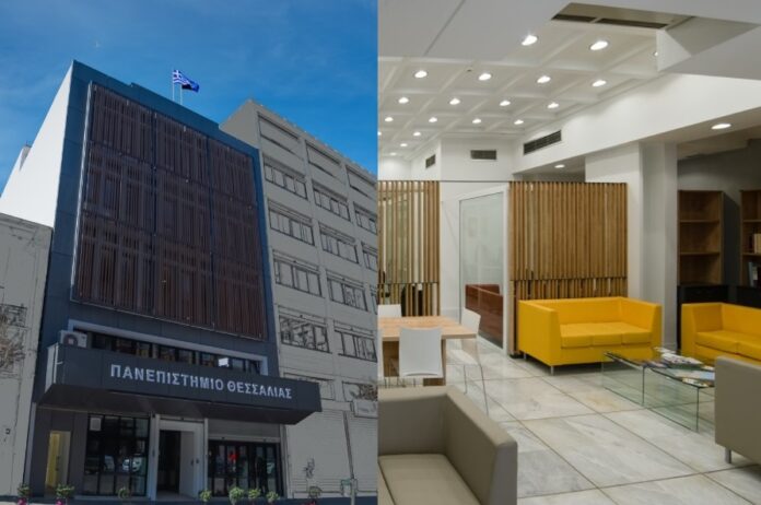 Διασχίζοντας την οδό Ιάσονος, στο κέντρο της πόλης, το τελευταίο χρονικό διάστημα η ματιά μας στέκεται σε ένα κτήριο διαφορετικό. Ένα κτήριο σύγχρονο, που αναδύει μια διαφορετική αισθητική. Αυτό το κτήριο έχει ενοικιασθεί από το Πανεπιστήμιο Θεσσαλίας, προκειμένου να καλύψει τις ανάγκες στέγασης των διοικητικών του υπηρεσιών. Η έμπειρη αρχιτεκτονική ομάδα υπό τον Στέφανο Αδαμάκη ανέλαβαν την «αναγέννηση» του εξαώροφου αυτού κτηρίου και σίγουρα το αποτέλεσμα είναι αποστομωτικό.