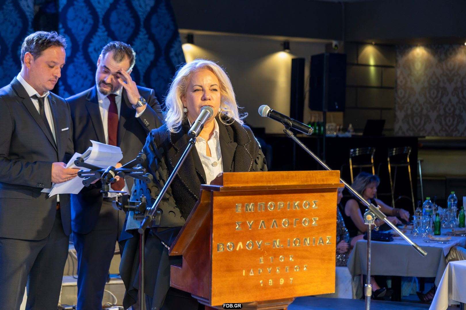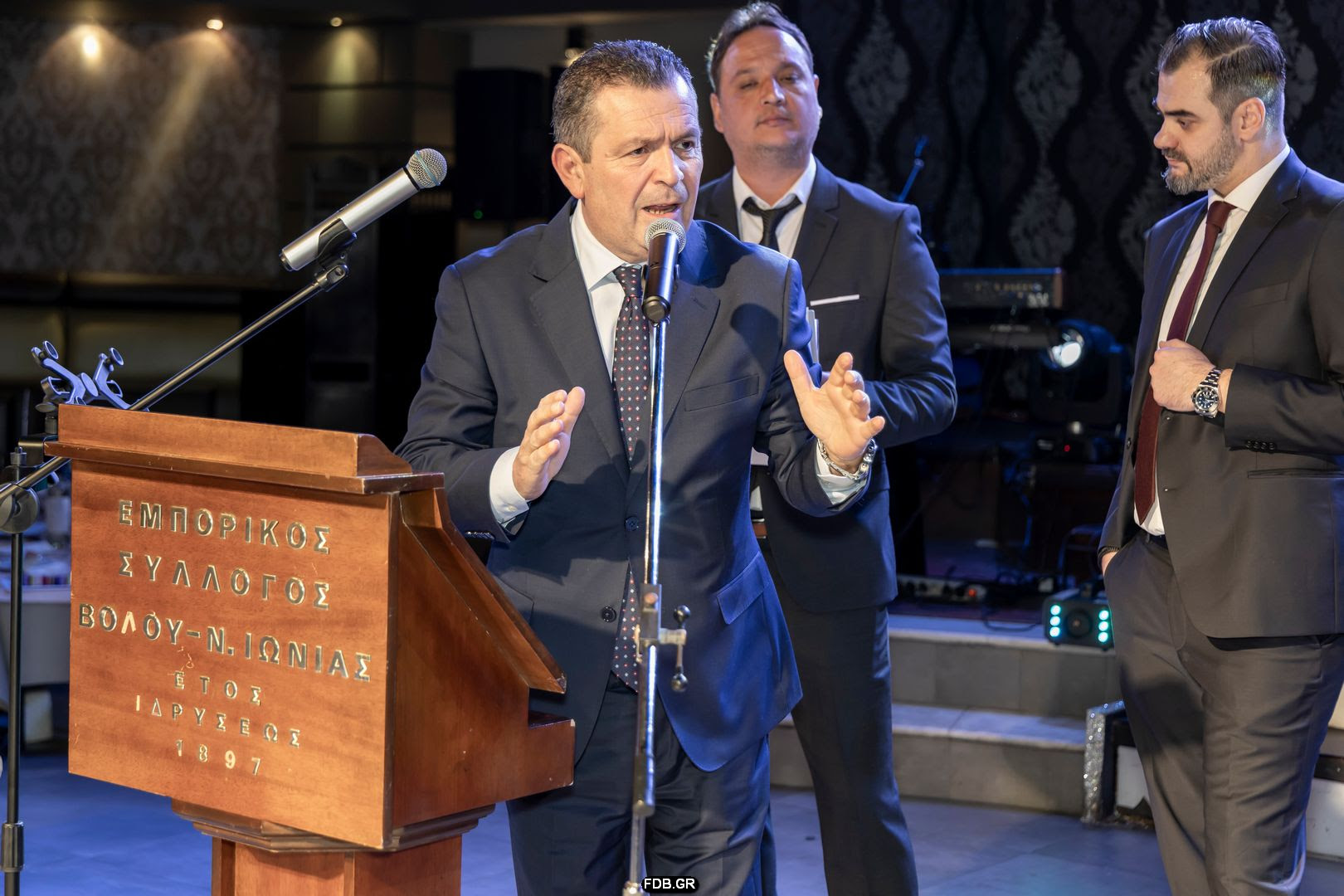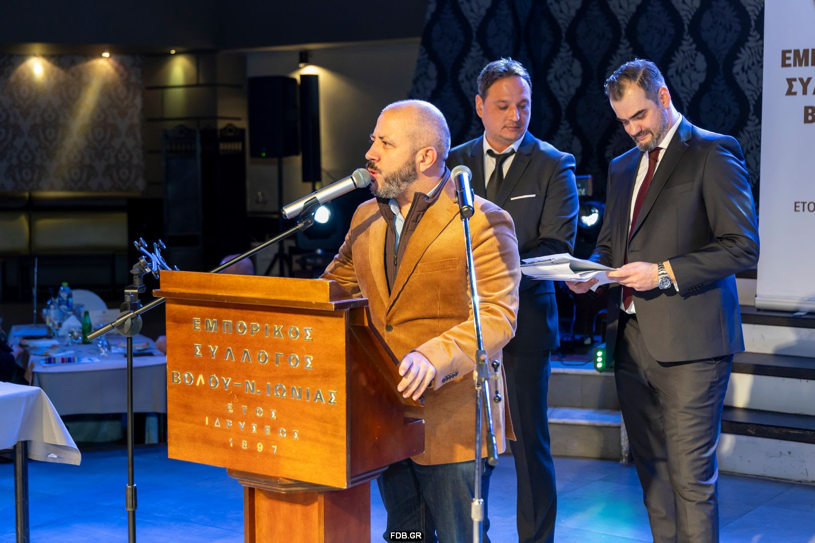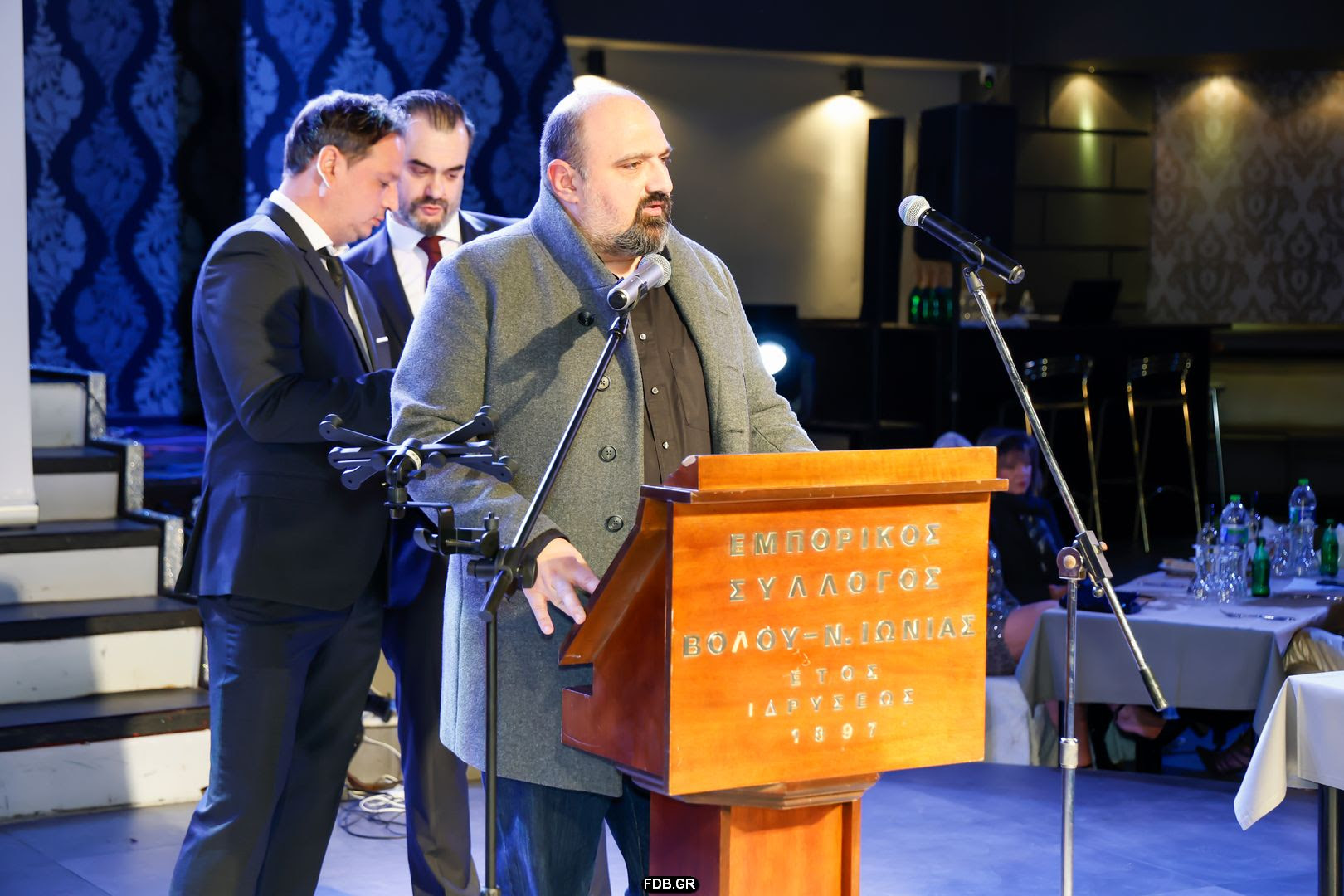 Τους προσκεκλημένους καλωσόρισαν ο Α’ αντιπρόεδρος του Εμπορικού Συλλόγου Βόλου Γεώργιος Σακελάρης, και ο υπεύθυνος Δημοσίων Σχέσεων Απόστολος Δαλιάνης, ευχαριστώντας τους για την τιμητική τους παρουσία.