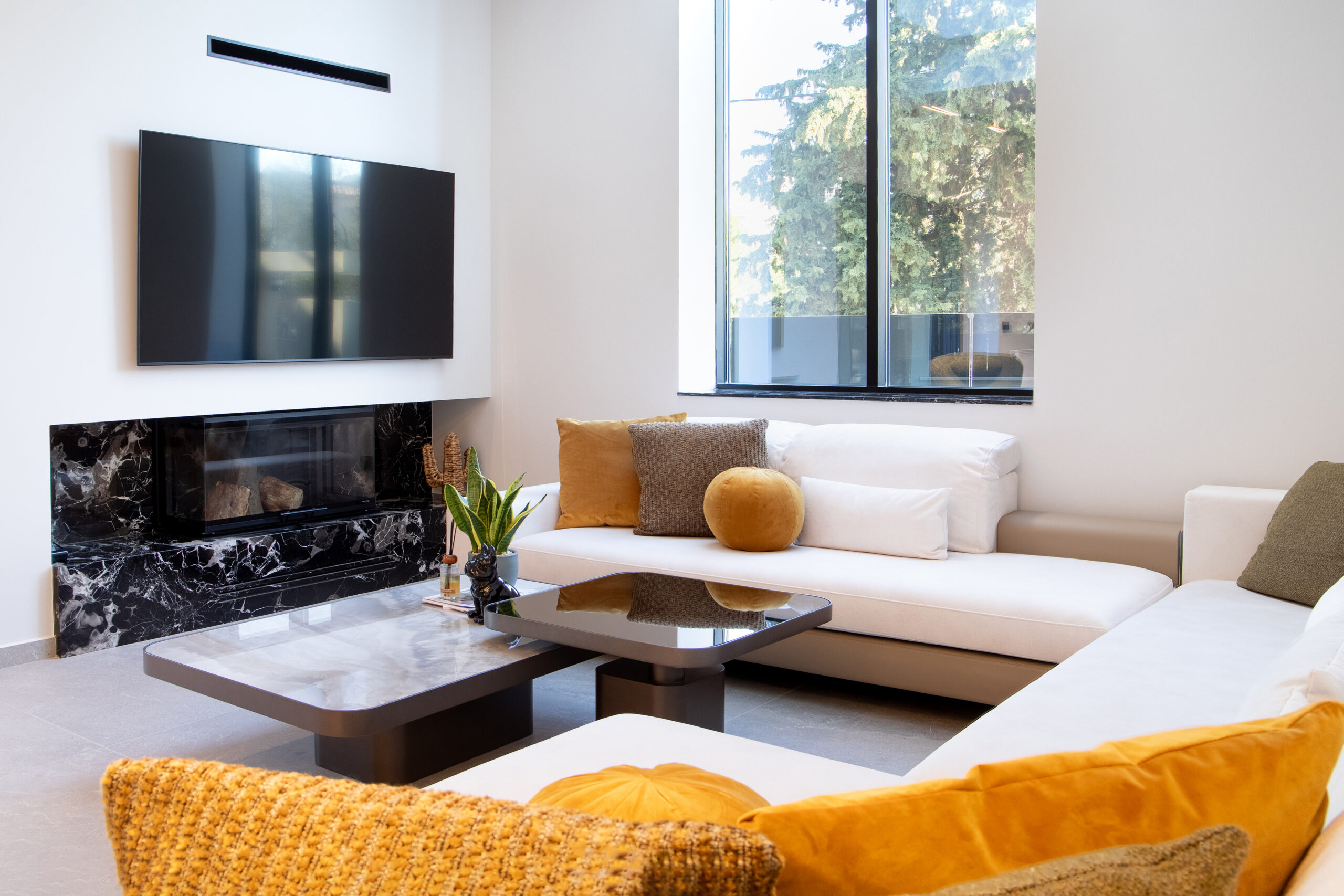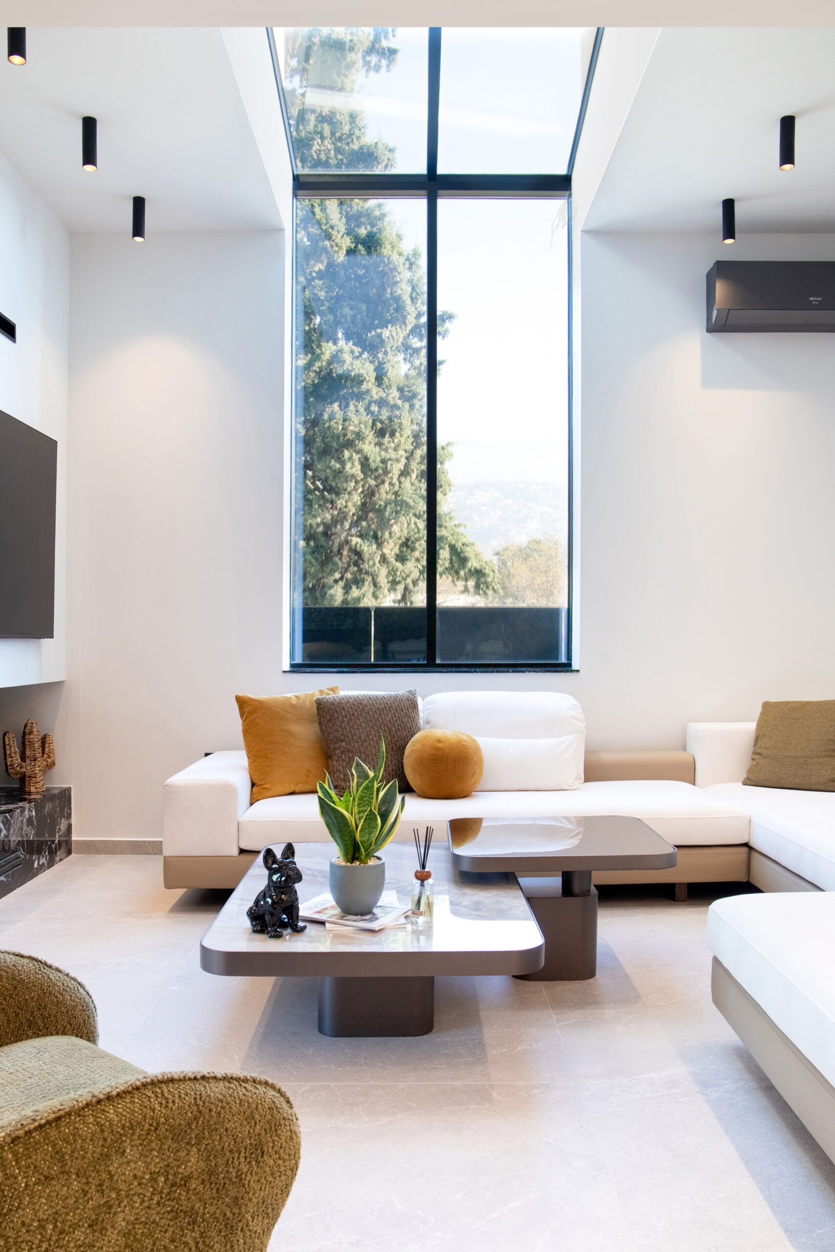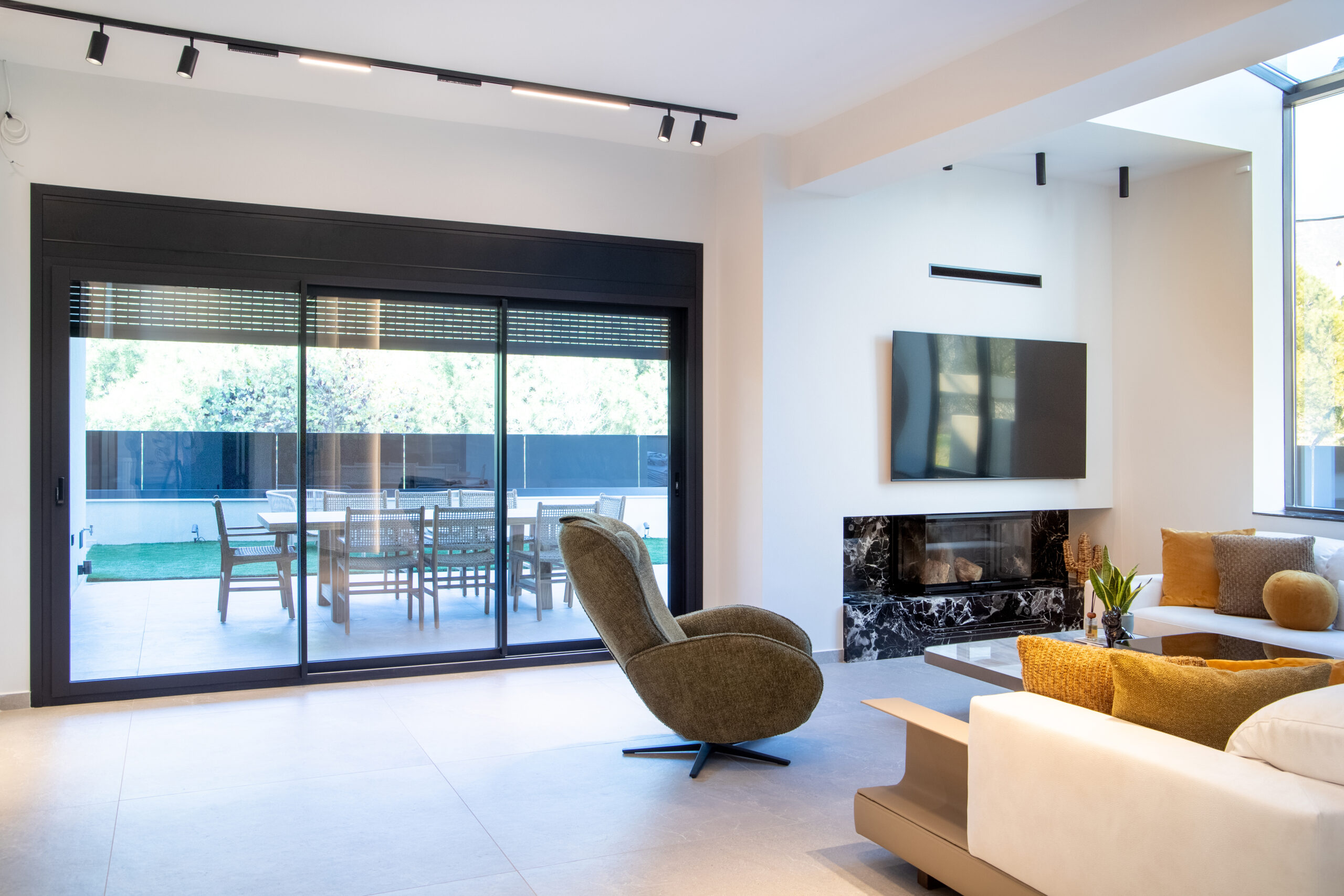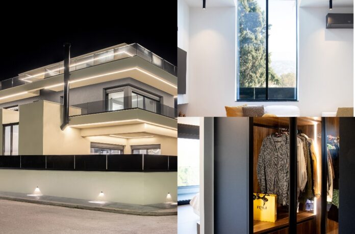 Ο σχεδιασμός επιδιώκει τη σύνθεση φωτός, υλικού και χώρου – όπου κάθε στοιχείο, από τα κουφώματα έως τα έπιπλα, αναδεικνύει την αρχιτεκτονική πρόθεση.