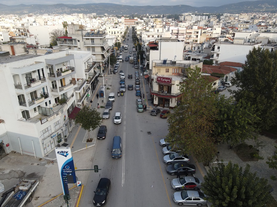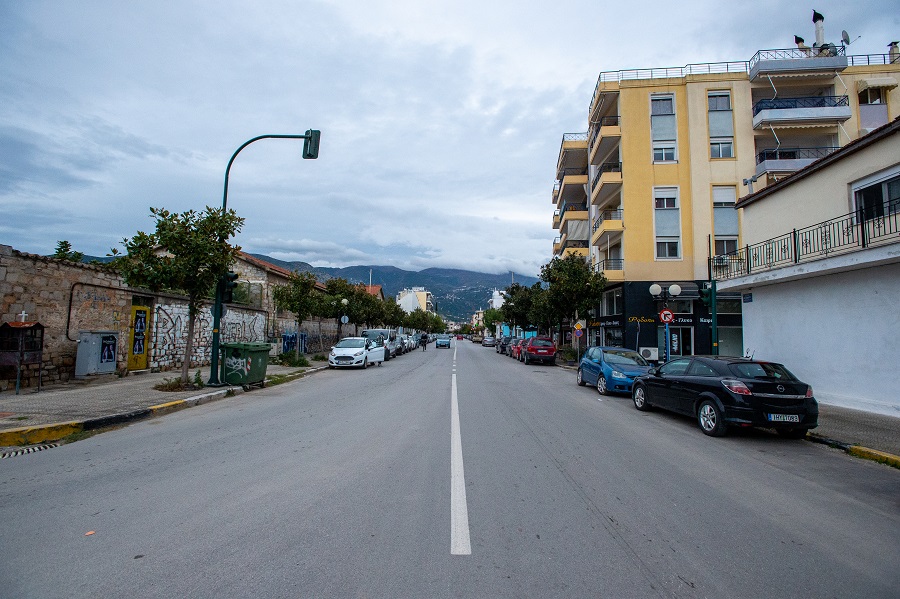 Οδός Μαιάνδρου με οικίες και επιχειρήσεις