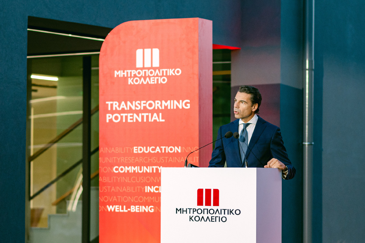 Στον χαιρετισμό του ο Πρόεδρος της BC PARTNERS, Νίκος Σταθόπουλος, αναφέρθηκε στην επένδυση στον μεγαλύτερο ιδιωτικό εκπαιδευτικό όμιλο της χώρας και στα σχέδια για την επόμενη ημέρα. Όπως χαρακτηριστικά δήλωσε: «Η επένδυσή μας στον Εκπαιδευτικό Όμιλο, Μητροπολιτικό-ΑΚΜΗ, αδιαμφισβήτητο ηγέτη στις Διεθνείς Πανεπιστημιακές Σπουδές και την Επαγγελματική Εκπαίδευση και Κατάρτιση, έχει ξεχωριστά χαρακτηριστικά. Η Εκπαίδευση δεν αποτελεί μόνο κλάδο οικονομικής δραστηριότητας, είναι βασική υποδομή του μέλλοντος για τη χώρα, είναι ο καλύτερος τρόπος να επενδύσουμε στη νέα γενιά. Είμαστε εδώ για να υποστηρίξουμε το Μητροπολιτικό Κολλέγιο και τον Οργανισμό, στο επόμενο στάδιο ανάπτυξής του. Θα επικεντρωθούμε στην ανάπτυξη των δεξιοτήτων των φοιτητών μας εστιάζοντας στην απασχολησιμότητα και τη σύνδεση με την παγκόσμια αγορά εργασίας, έτσι όπως έχει εξελιχθεί μετά την 4η βιομηχανική επανάσταση, εμπλουτίζοντας το εκπαιδευτικό portfolio με σύγχρονα πανεπιστημιακά προγράμματα, επενδύοντας στις νέες τεχνολογίες και τον ψηφιακό μετασχηματισμό. Θα συνεχίσουμε μαζί τις συντονισμένες προσπάθειες για την ανάπτυξη ενός δυναμικού Κέντρου Διεθνούς Πανεπιστημιακής Εκπαίδευσης στη χώρα, μέσω της διεύρυνσης των συνεργασιών με διακεκριμένα Πανεπιστήμια από όλο τον κόσμο, φιλοδοξώντας να συμβάλουμε στον επαναπροσδιορισμό της Ελλάδας ως παγκόσμιου εκπαιδευτικού προορισμού. Μπροστά στις προοπτικές και προκλήσεις της επόμενης ημέρας στην Εκπαίδευση, ο Οργανισμός μας έχει τα πιο ισχυρά διαπιστευτήρια και θα συνεχίσει να πρωταγωνιστεί».