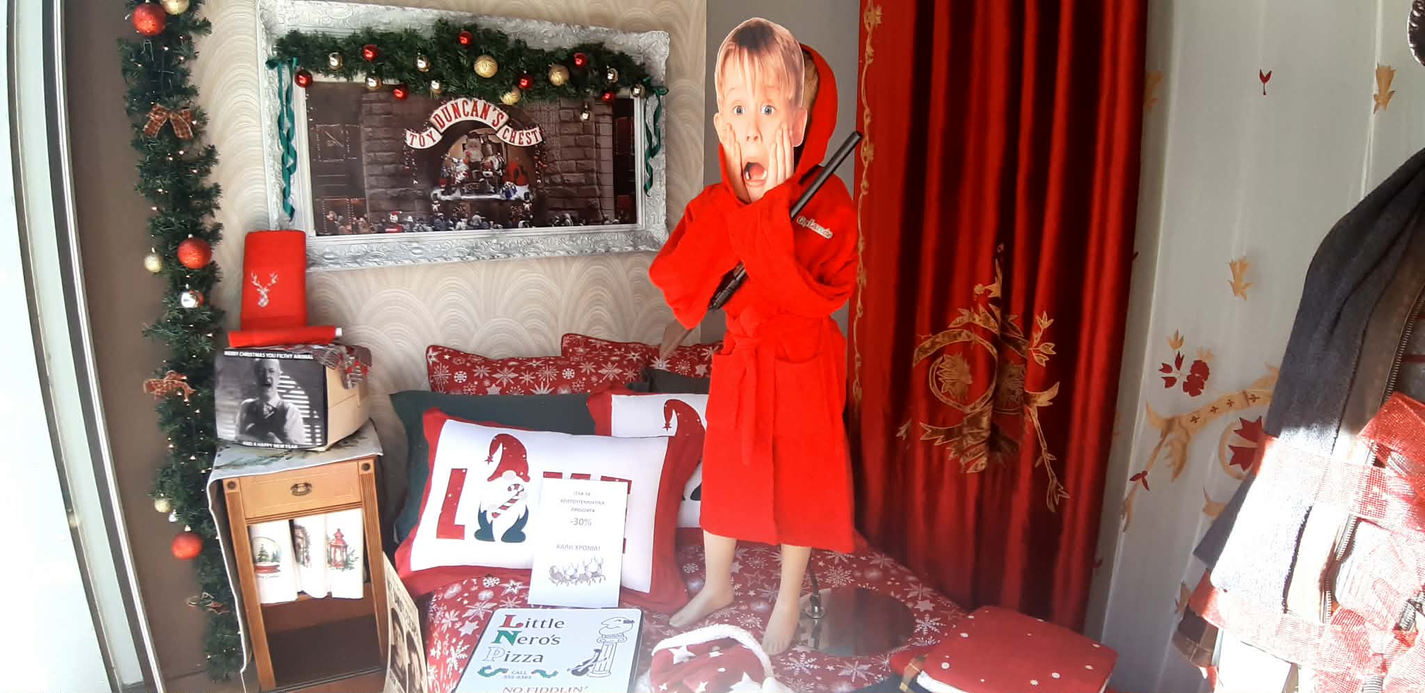 Έτσι λοιπόν ο Κέβιν και οι γνωστοί διαρρήκτες της ταινίας, πήραν τη θέση τους στη βιτρίνα της «Οικοένδυσης» χαρίζοντας χαμόγελα και χαρά σε μικρούς και μεγάλους.