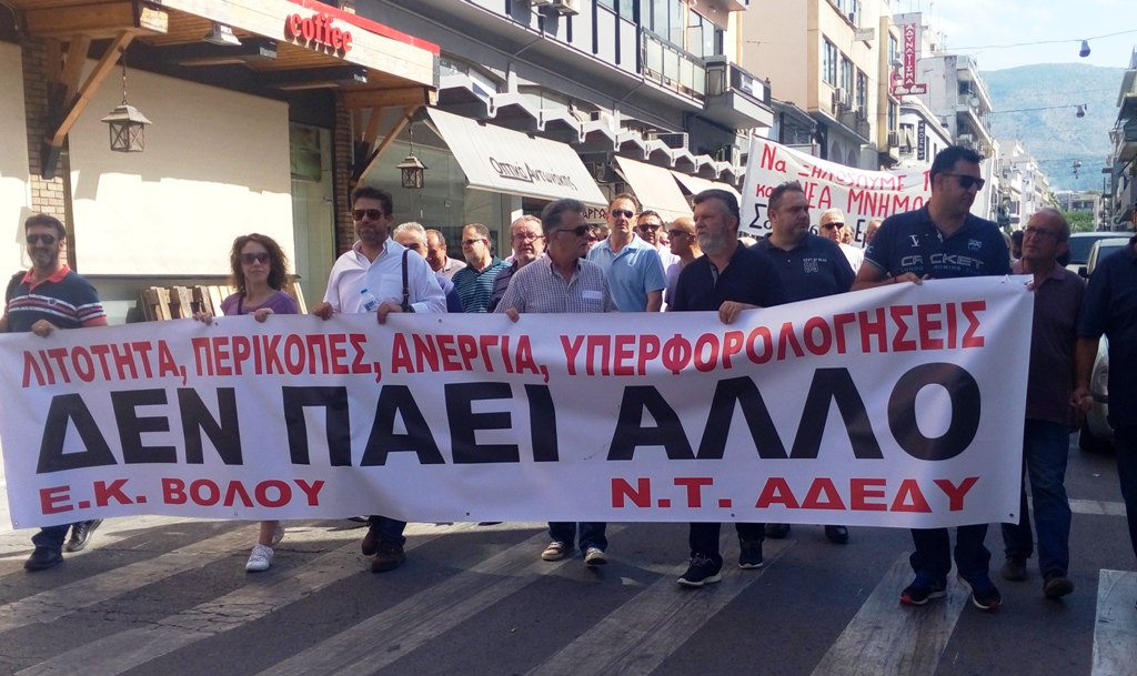 Ο Θανάσης Παπαδημόπουλος, πρόεδρος του Εργατικού Κέντρου Βόλου, είπε ότι δυστυχώς ο λαός έχει χάσει κάθε ελπίδα και πρέπει να ξέρει ότι ο μόνος τρόπος για ν’ αλλάξει η κατάσταση είναι να βγει ξανά στους δρόμους.
