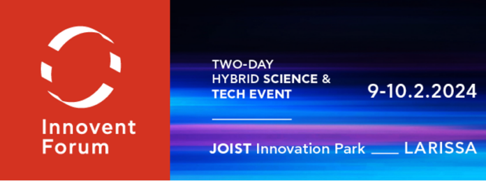 Διήμερη υβριδική έκθεση αφιερωμένη στην Επιστήμη και την Τεχνολογία που προωθεί και αναδεικνύει καινοτόμες τεχνολογικές λύσεις, προς όφελος της ανθρωπότητας με στόχο την αξιοποίησή τους μέσα από τη δικτύωση και τη συνεργασία με τίτλο «Innovent Forum 2024 – Matchmaking Event: Προσφέροντας Ευκαιρίες Δικτύωσης και Συνεργασίας», πραγματοποιείται διά ζώσης και online την Παρασκευή 9 και το Σάββατο 10 Φεβρουαρίου στο Joist -Πάρκο Καιτονομίας στη Λάρισα με συνδιοργανωτές το Πανεπιστήμιο Θεσσαλίας και την Περιφέρεια Θεσσαλίας, υπό την αιγίδα τoυ Υπουργείου Ψηφιακής Διακυβέρνησης και του Υπουργείου Ανάπτυξης .