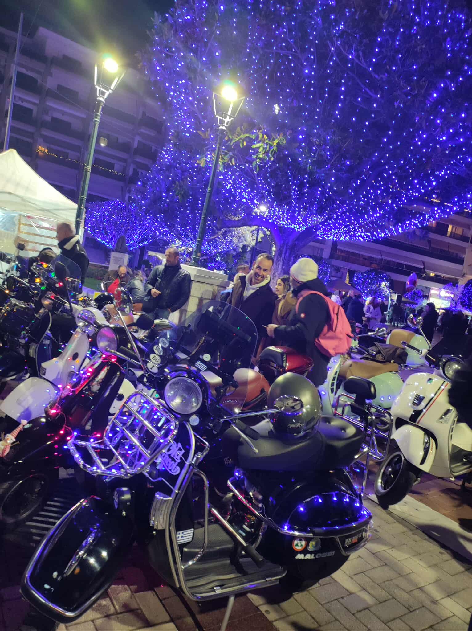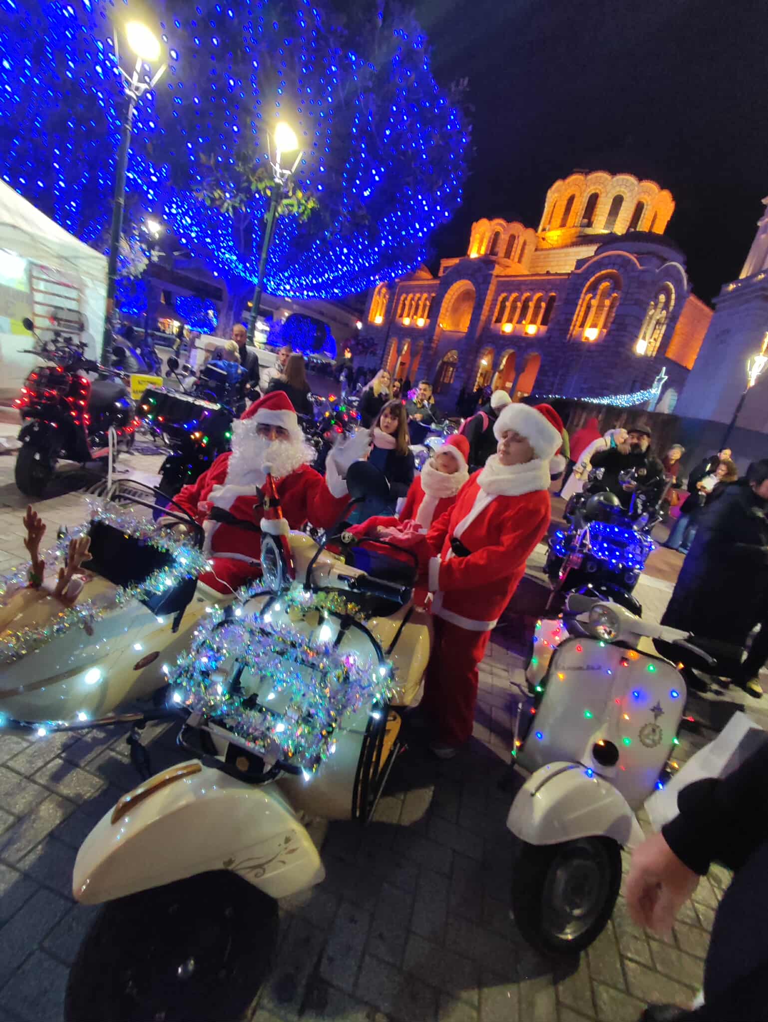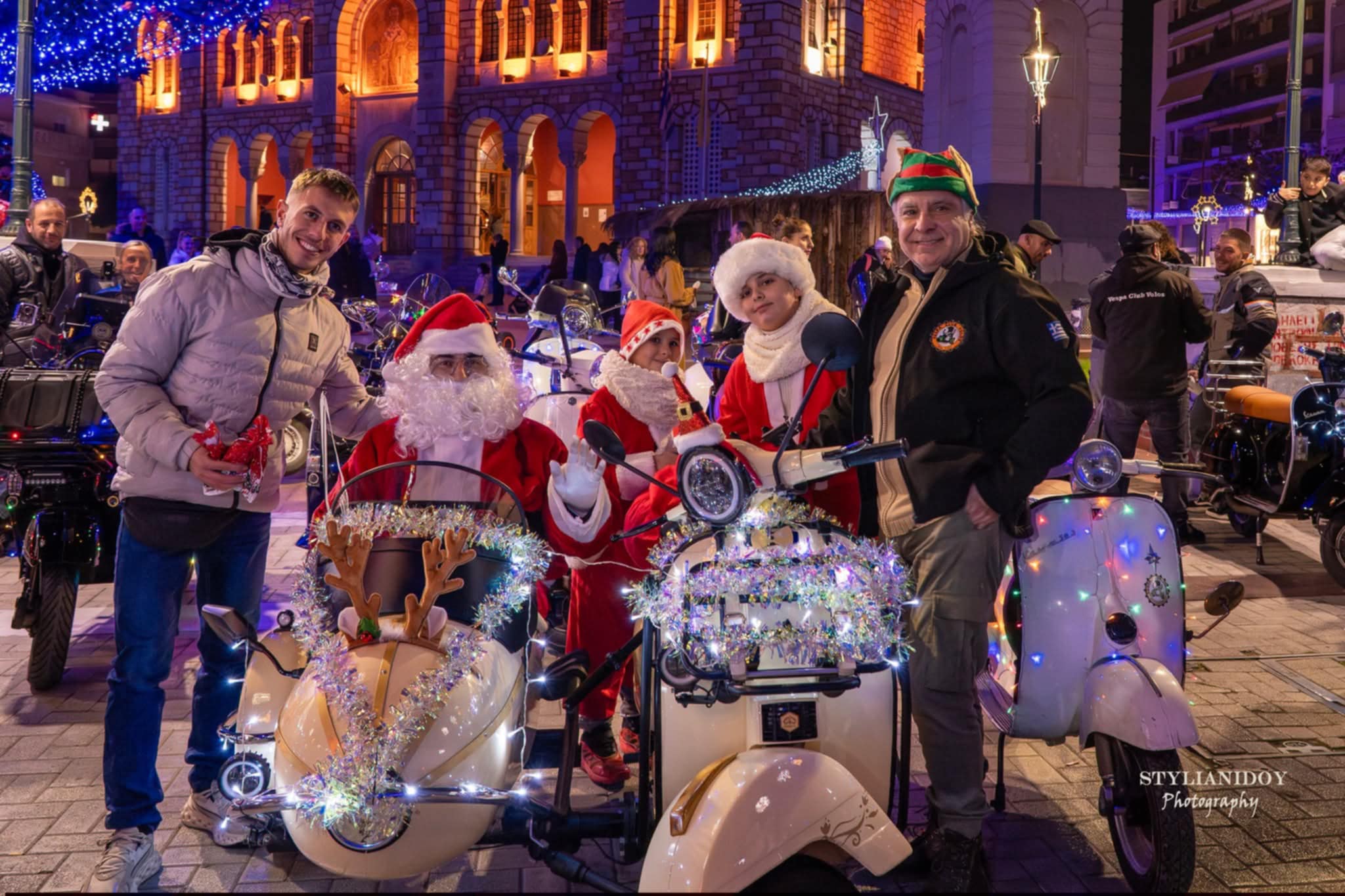 Φόρεσαν τα γιορτινά τους, «έντυσαν» με λαμπάκια τις ξεχωριστές βέσπες τους και τα μέλη του Vespa Club Volos πραγματοποίησαν το απόγευμα του Σαββάτου την πιο όμορφη και εντυπωσιακή βόλτα στον Βόλο, με τον Άγιο Βασίλη στο vespo-έλκυθρό του να μοιράζει χαμόγελα και δώρα στα παιδιά στον Άγιο Νικόλαο.
