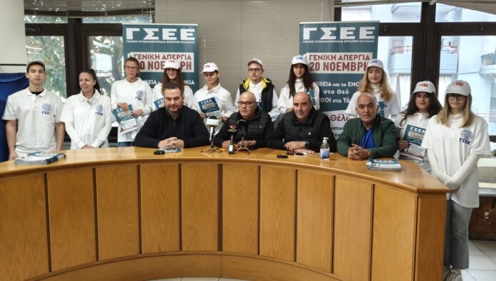 Με καμπάνια ενημέρωσης του κόσμου για την γενική απεργία στις 20 Νοέμβρη στο κέντρο του Βόλου, κλιμάκιο της ΓΣΕΕ βρίσκεται σήμερα στον Βόλο και από το μεσημέρι διανέμει φυλλάδια ζητώντας Συλλογικές Συμβάσεις Εργασίας, λύσεις στην ακρίβεια και στη στεγαστική κρίση και λήψη μέτρων για να αντιμετωπιστούν τα εργατικά ατυχήματα.