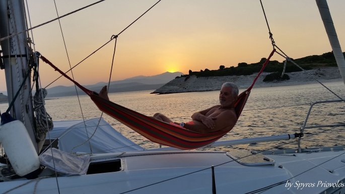 Σχετικά με τις προμήθειες που έχει κάνει στο σκάφος αλλά για το πως περνάει η ώρα είπε: «Έχουμε κάνει τις προμήθειες μας αλλά όχι υπερβολές. Τα απαραίτητα τα έχουμε. Αν θέλουμε κάτι μπορούμε να το προμηθευτούμε. Περνάμε πολλές ώρες γράφοντας και διαβάζοντας. Έχουμε το pc μας, τηλεόραση, μαγειρεύουμε και συζητούμε μεταξύ μας, με τα παιδιά αλλά και με φίλους που μας καλούν για να δουν τι κάνουμε. Γενικά η ζωή στο ιστιοπλοϊκό είναι θέμα φιλοσοφίας και για μας δε μετράει μόνο ο προορισμός αλλά κυρίως το ταξίδι. Πρέπει να ξημερώσεις και να βραδιάσεις μέσα στη θάλασσα για να απολαύσεις τις ομορφιές. Πρέπει να φτιάξεις το καφεδάκι σου το χάραμα για να αισθανθείς διαφορετικός».