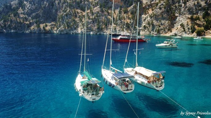 Οι αυστηροί νόμοι δεν εξαιρούν το ζεύγος Πριόβολου από την καραντίνα, αλλά η θάλασσα και η αμεσότητα με το φυσικό περιβάλλον δίνουν αίσθηση ελευθερίας: «Κι εμείς είμαστε σε καραντίνα. Κατ΄ αρχήν απαγορεύεται ο απόπλους και ο κατάπλους στο λιμάνι για σκάφη αναψυχής. Μάλιστα ένα σκάφος που ο ιδιοκτήτης του το έχει φέρει από την Ιταλία βρίσκεται αρόδο έξω από το λιμάνι και δεν του έχει επιτραπεί η είσοδος. Αλλά και από το σκάφος για να βγούμε έξω πρέπει να πάρουμε άδεια. Μας ελέγχει το Λιμενικό. Μένουμε όλη μέρα στο σκάφος. Δεν έχουμε τις πολυτέλειες ούτε το χώρο ενός μεγάλου σπιτιού που μπορείς να περπατήσεις πιο άνετα. Ο χώρος είναι περιορισμένος όπως και οι ανέσεις. Η αίσθηση όμως που σου δίνει η αμεσότητα με το φυσικό περιβάλλον σε κάνει να νιώθεις μεγαλύτερη ελευθερία».