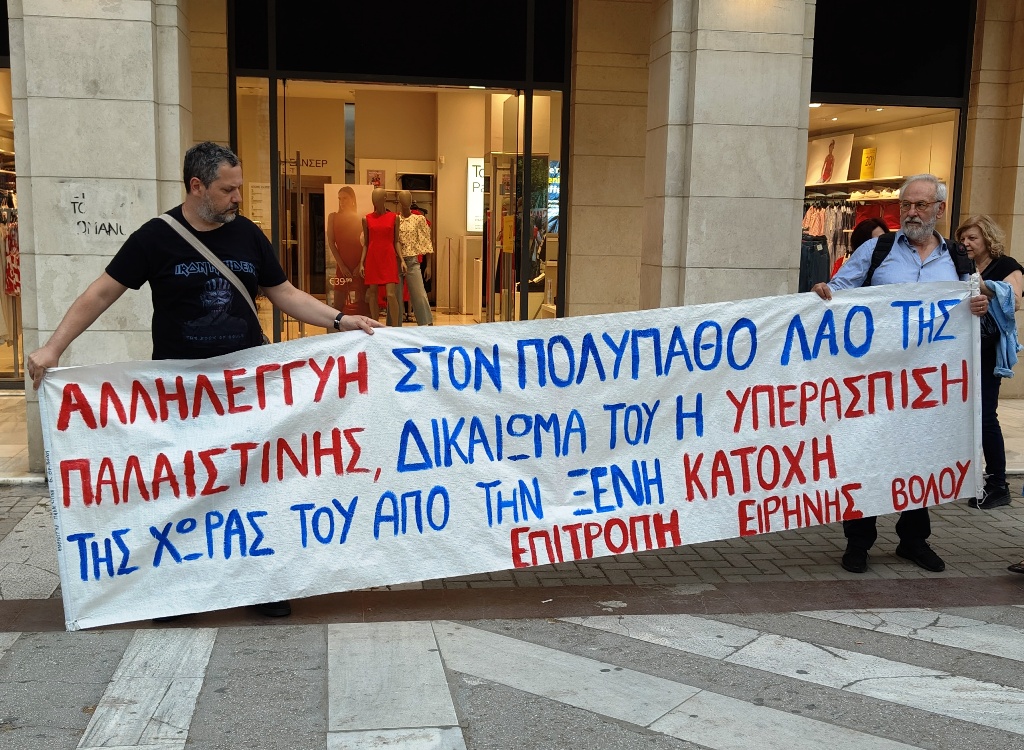 Ο Θόδωρος Καραγιάννης πρόεδρος της Επιτροπής Ειρήνης Ν. Μαγνησίας ανέφερε ότι η κατάσταση στην Παλαιστίνη έχει ξεφύγει από κάθε ανθρώπινο μέτρο, αυτό που συμβαίνει εκεί είναι ντροπή για το ανθρώπινο είδος. Συνεχείς βομβαρδισμοί, συστηματική προσπάθεια εξαθλίωσης και εξαφάνισης με εκατοντάδες θύματα καθημερινά.