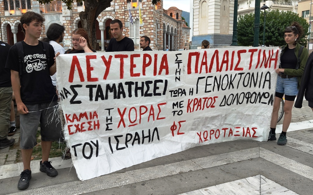 Στο δρόμο βγήκαν σήμερα το απόγευμα η Επιτροπή Ειρήνης Ν. Μαγνησίας και εκπρόσωποι σωματείων, φορέων και φοιτητές, για να καταγγείλουν την γενοκτονία του Ισραήλ στη Γάζα. Με συγκέντρωση που έκαναν στην οδό Ερμού μπροστά από τον Μητροπολιτικό Ναό του Αγ. Νικολάου.