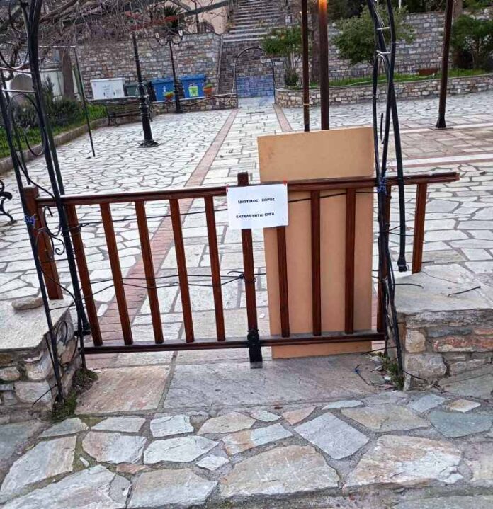 Το πλαστικό πλέγμα αντικαταστάθηκε από ξύλινο και τοποθετήθηκαν πινακίδες που ορίζουν την πλατεία ως ιδιωτικό χώρο και πρόσβαση των δημοτών στην πλατεία τους αποκλείστηκε .