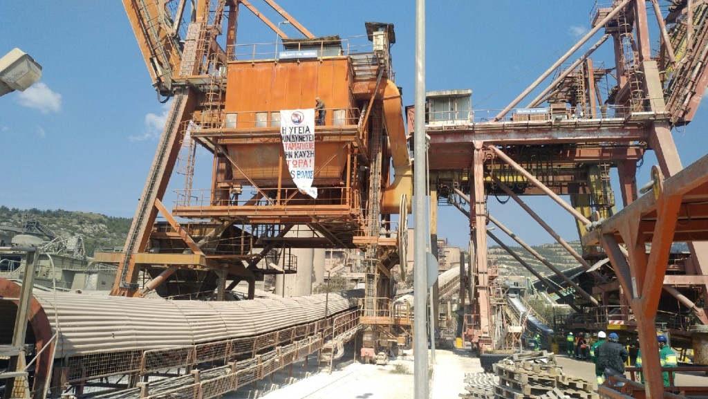 Στη διάρκεια παραμονής των διαδηλωτών στο λιμάνι της ΑΓΕΤ, σταμάτησε κάθε εργασία εκφόρτωσης των καυσίμων από το πλοίο, που προορίζονται για καύση στους κλιβάνους της τσιμεντοβιομηχανίας.