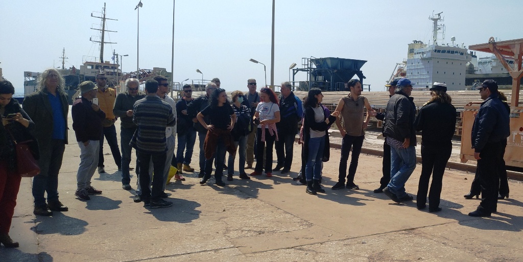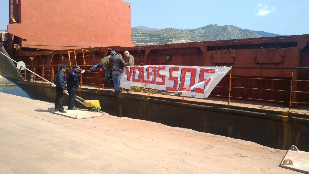 Μετά από κάλεσμα της επιτροπής αγώνα πολιτών περίπου 30 άνθρωποι συγκεντρώθηκαν έξω από το λιμάνι της ΑΓΕΤ και αφού άνοιξε η πόρτα, μπήκαν στις λιμενικές εγκαταστάσεις με πανό, προσέγγισαν το πλοίο, με σημαία Ουκρανίας, το κρέμασαν πάνω στο πλοίο και, έμειναν στο χώρο μέχρι τις 2 το μεσημέρι.