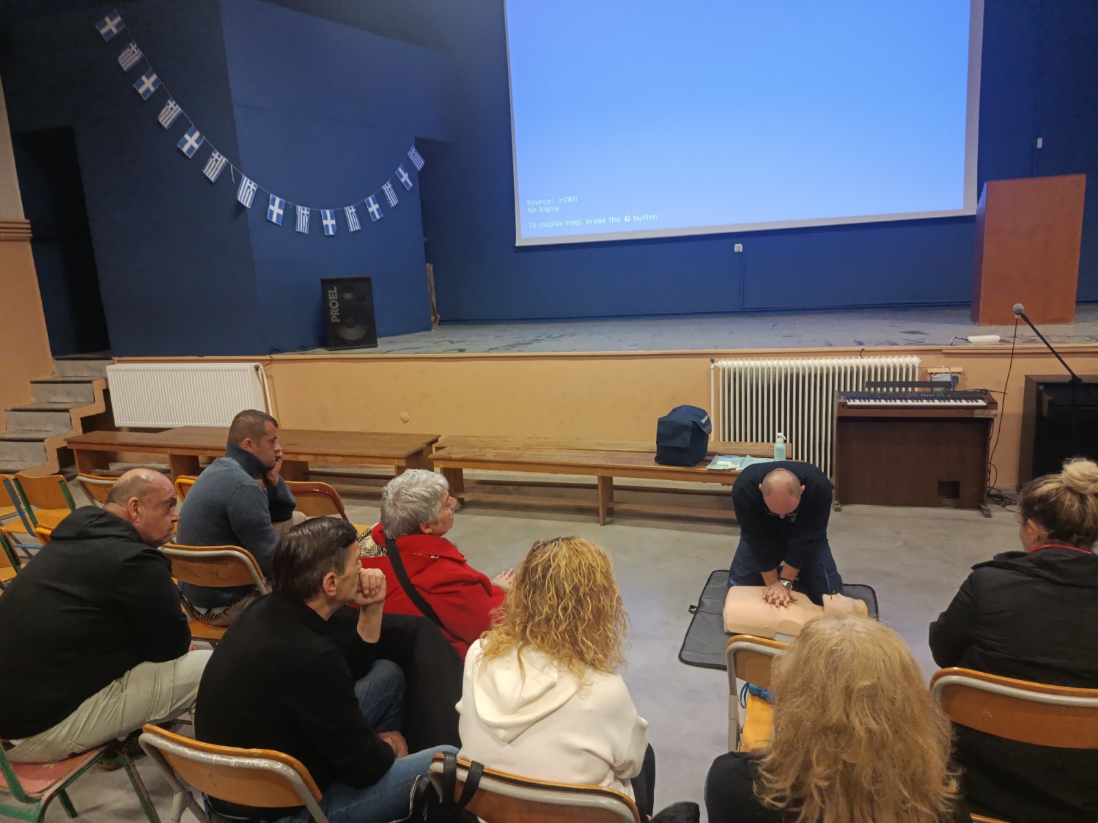 Στη δεύτερη, οι μαθητές και οι εκπαιδευτικοί συμμετείχαν ενεργά σε πρακτική εξάσκηση στην εφαρμογή Καρδιοπνευμονικής Αναζωογόνησης και στη χρήση αυτόματου εξωτερικού απινιδωτή (AED), χρησιμοποιώντας ειδικά ανθρώπινα προπλάσματα. Η θεωρία πήρε σάρκα και οστά· η γνώση έγινε πράξη.