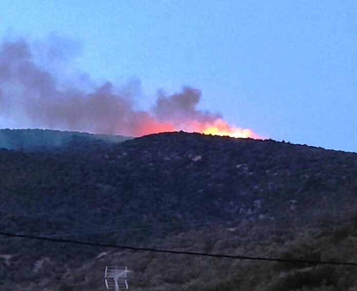 Η φωτιά, νωρίς το βράδυ, είναι σε πλήρη εξέλιξη και είναι ορατή από τον Βόλο και τους παραλιακούς οικισμούς προς Ν. Αγχίαλο.