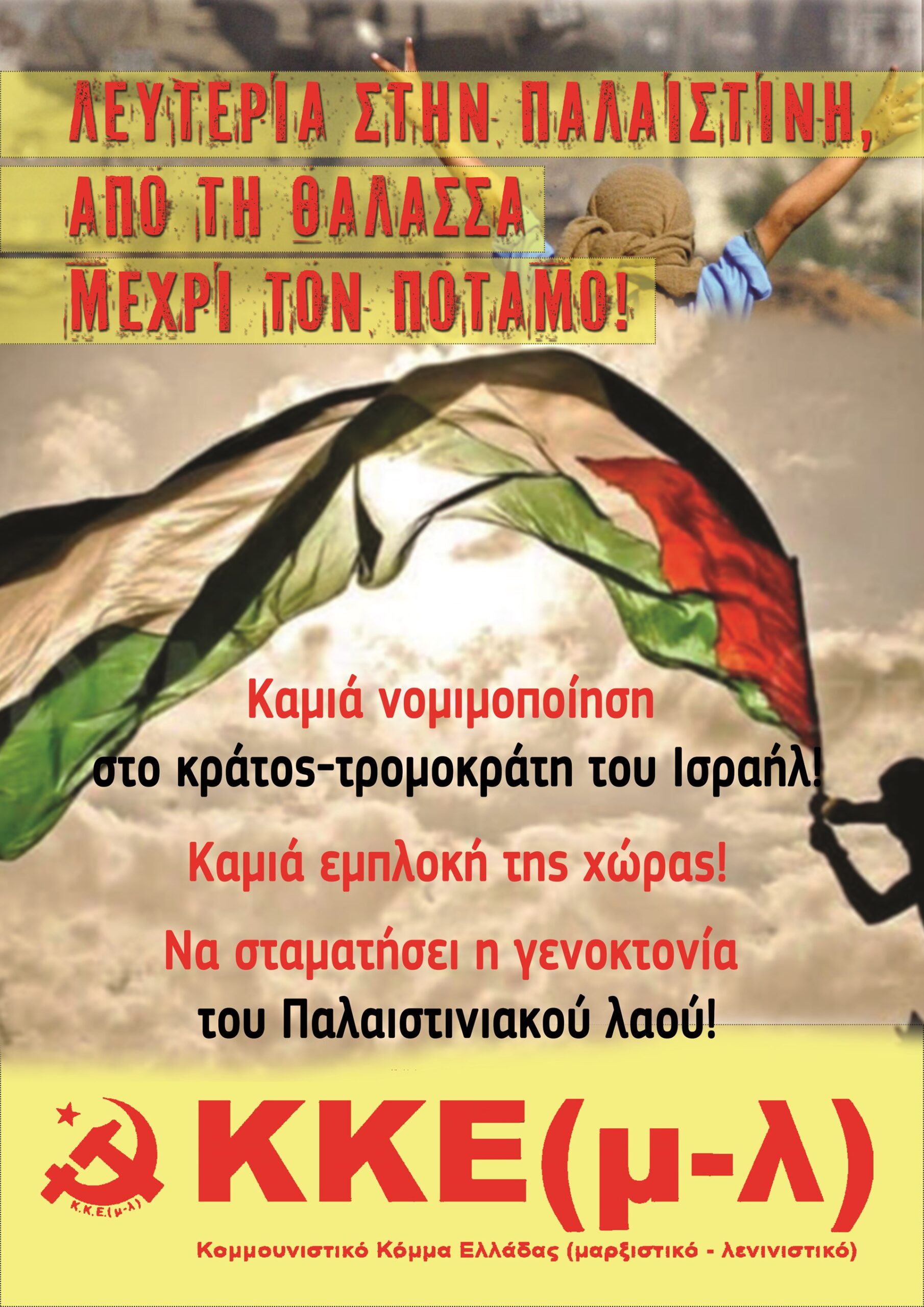 Μπροστά λοιπόν στην κλιμάκωση της σφαγής στη Γάζα, καλούμε κάθε δημοκράτη άνθρωπο, κάθε αλληλέγγυο στον παλαιστινιακό λαό, στους δρόμους της αντίστασης και του αγώνα».