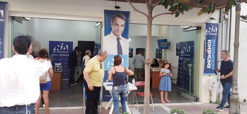 Χαμόγελα επικράτησαν στο εκλογικό κέντρο της Νέας Δημοκρατίας στον Βόλο, αμέσως μετά την ανακοίνωση των exit polls και την ευρεία διαφορά του κόμματος από τον ΣΥΡΙΖΑ. Φίλοι, μέλη και ψηφοφόροι της Νέας Δημοκρατίας έσπευσαν από νωρίς στο εκλογικό κέντρο και όσο περνά η ώρα ο παλμός εντείνεται.