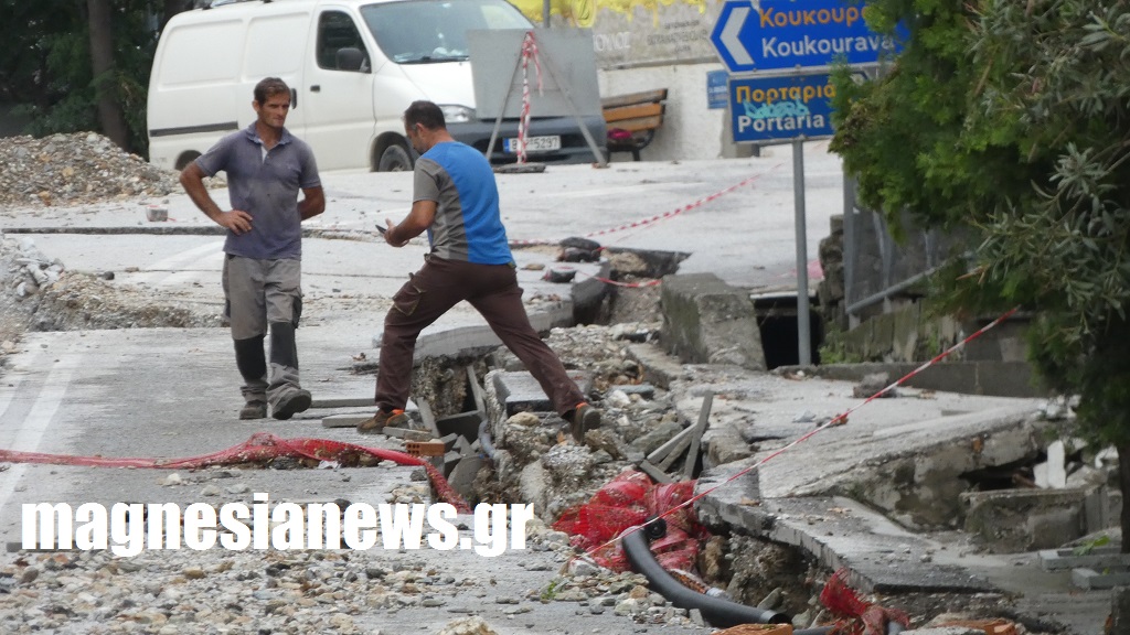 Για μία ακόμη φορά ο δρόμος της Ιωλκού, στο ύψος του Γηροκομείου Βόλου εξαφανίστηκε, με την πρόχειρη κατασκευή και το μπάζωμα που είχε γίνει από την προηγούμενη καταστροφική θεομηνία, να παρασύρεται από το ορμητικό νερό του Κραυσίδωνα.