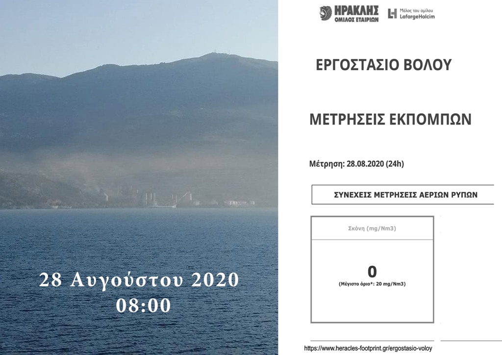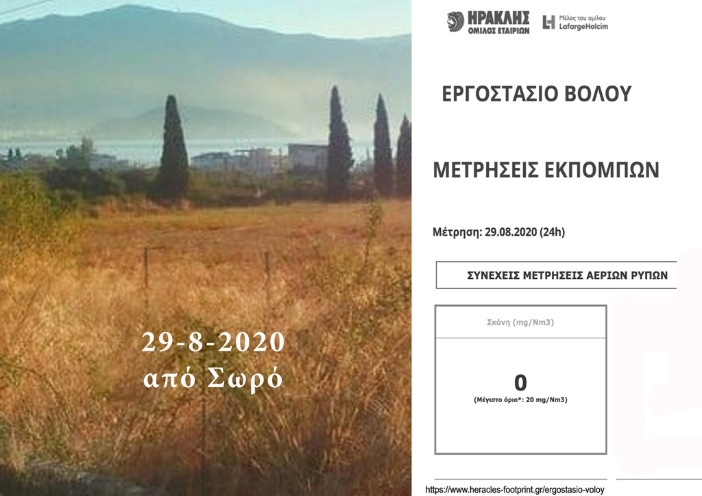 Τις τελευταίες μέρες (29-8-2020 έως 31-8-2020) υπάρχει έντονη δυσοσμία στην πόλη του Βόλου, ενώ υπάρχει σειρά φωτογραφιών από διαφορετικούς πολίτες και διαφορετικές ώρες να δείχνουν πώς οι νότιας διεύθυνσης άνεμοι κατευθύνουν ένα έντονο σύννεφο σκόνης που δημιουργείται στην περιοχή της εγκατάστασης της ΑΓΕΤ στην Αγριά Βόλου ειδικά τις πρωινές ώρες. Σε αυτές τις ώρες στο καταγραφικό όργανο της βιομηχανίας ΑΓΕΤ (που χαρακτηρίζεται ως online από πολλούς δημοσιογράφους χωρίς όμως να είναι) οι τιμές της σκόνης είναι συνεχώς μηδενικές. Θα ανέμενα υψηλές τιμές σκόνης, αν βασίσω την κρίση μου σε αυτό που είδα και είδαν εκατοντάδες Βολιώτες. Παρόλ’ αυτά οι τιμές σκόνης ως μέσος όρος του εικοσιτετραώρου είναι μηδενικές, όπως φαίνεται στην ιστοσελίδα της τσιμεντοβιομηχανίας. Για όλα αυτά παραθέτω φωτογραφίες και τα αποτελέσματα του καταγραφικού οργάνου της εταιρείας. Παρακαλώ, έχοντας την αίσθηση της επιστημονικής ευθύνης προς το κοινωνικό σύνολο του Βόλου και χωρίς να έχω καμία θέση εκπροσώπησής του, σας ερωτώ ως απλός πολίτης: