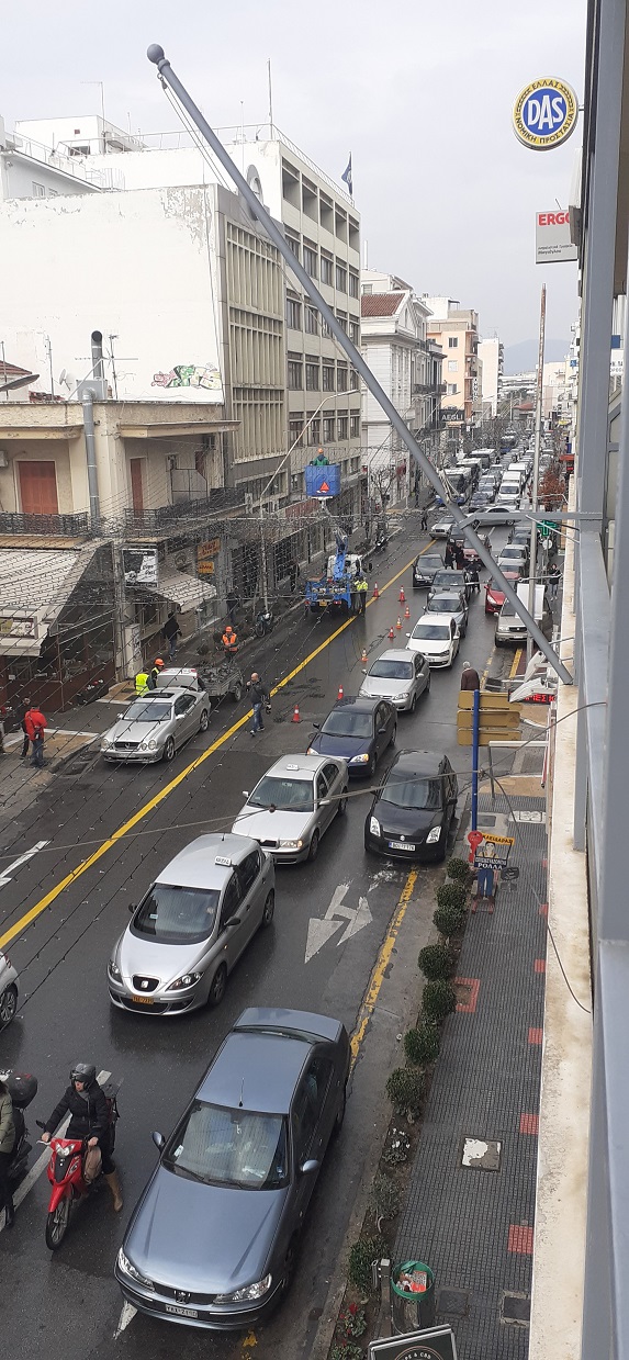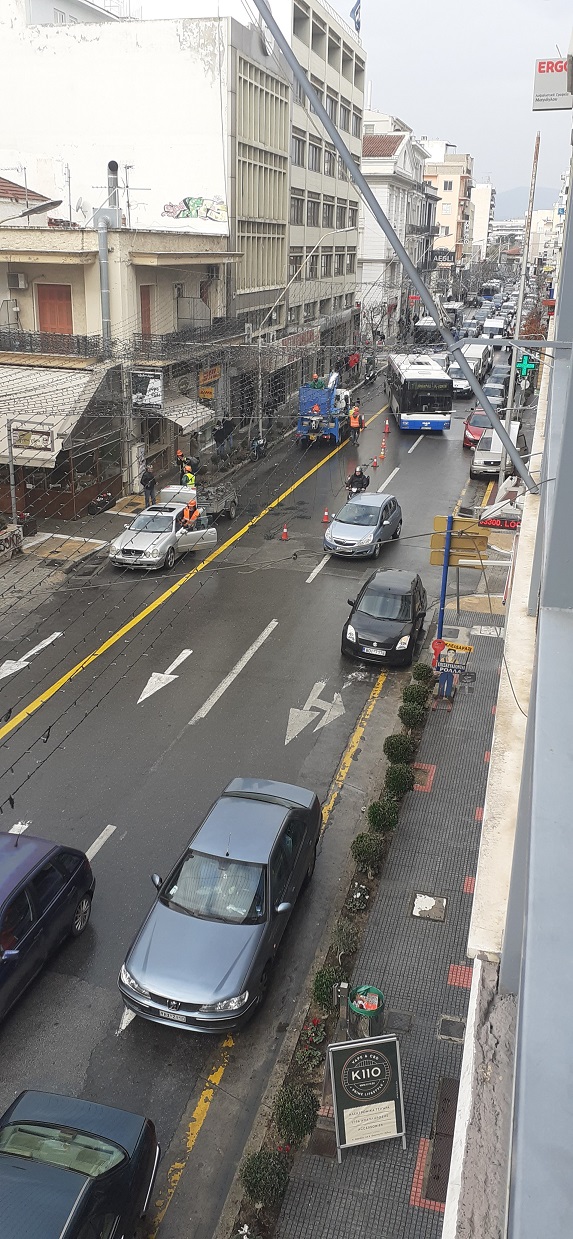 Κυκλοφοριακό “κομφούζιο” επικράτησε από το πρωί της Δευτέρας στους κεντρικούς δρόμους της πόλης, καθώς συνεργεία ξεκίνησαν να ξεστολίζουν τα μπλε χριστουγεννιάτικα λαμπάκια, κλείνοντας όμως το ένα ρεύμα από τις κεντρικές οδικές αρτηρίες.