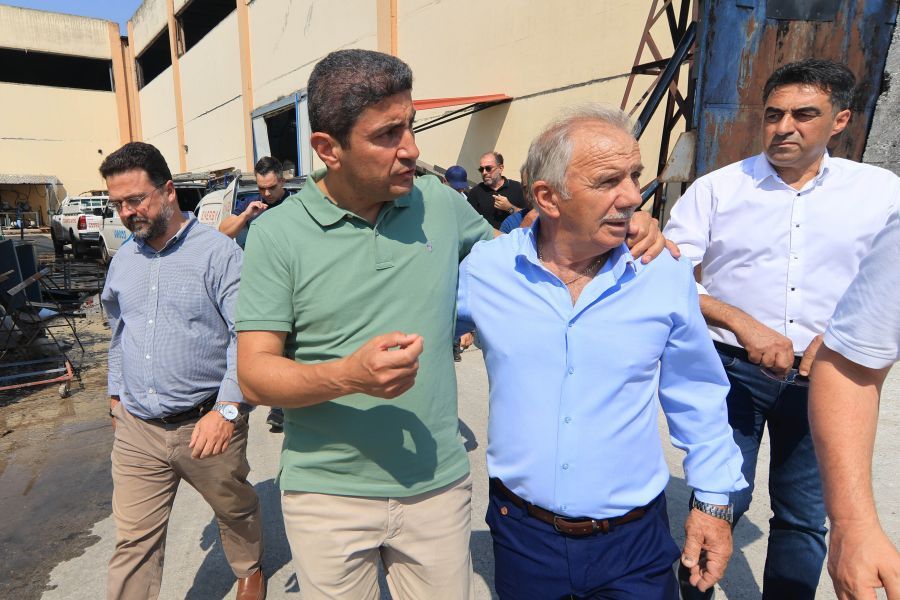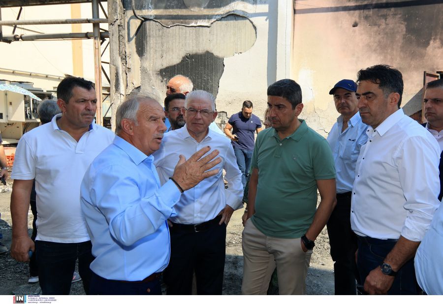 Νωρίτερα ο Λευτέρης Αυγενάκης επισκέφθηκε τον Αγροτικό Οινοποιητικό Συνεταιρισμό ΔΗΜΗΤΡΑ που υπέστη σοβαρές ζημιές από εκτόξευση βλήματος από διπλανή αποθήκη πυρομαχικών. Ο υπουργός περιηγήθηκε στις εγκαταστάσεις του Συνεταιρισμού και είδε τις ζημιές.