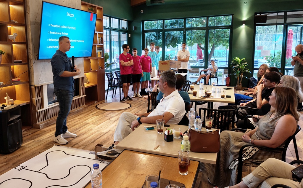 Στην εκδήλωση που έγινε σήμερα το απόγευμα στην εγκατάσταση τένις στη Ν. Ιωνία, παραβρέθηκαν η αντιδήμαρχος Παιδείας και Εκπαίδευσης Χριστίνα Μαρασίδη, οι γονείς των παιδιών, καθώς και φίλοι και υποστηρικτές της Λέσχης Εκπαιδευτικής Ρομποτικής.