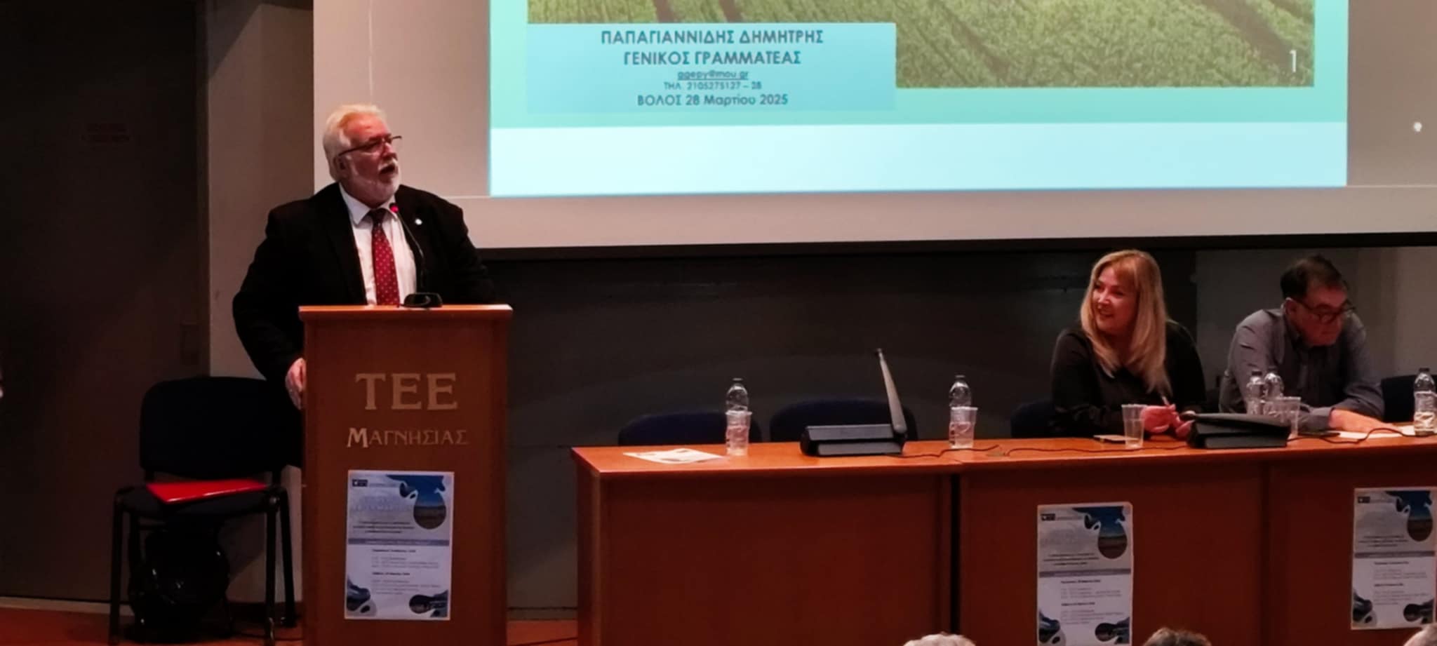 Ο γενικός γραμματέας Ενωσιακών Πόρων και Υποδομών του υπουργείου Αγροτικής Ανάπτυξης και Τροφίμων, Δημήτριος Οδ. Παπαγιαννίδης δήλωσε πως στη διημερίδα θα ενημερώσει το πώς προχωρούν τα δύο έργα μέσω ΣΔΙΤ που υλοποιούνται στη Θεσσαλία. Εκτίμησε πως δεν μπορεί να υλοποιηθεί αποταμίευση στο νερό χωρίς την παρουσία μεγάλων φραγμάτων και θα πρέπει να αποφευχθεί, όπως το χαρακτήρισε, το σύνδρομο του Αχελώου, γιατί καταστρέφει τον πρωτογενή τομέα και τον τουρισμό. Τόνισε ότι η κυβέρνηση Μητσοτάκη, παρά τις αντιδράσεις έχει βάλει μπροστά τα έργα για να αμβλυνθούν οι επιπτώσεις της λειψυδρίας. «Δεν υπάρχει μαγική λύση. Χωρίς νερό, η πραγματικά σκληρή διαχείρισή του με όρους και κανόνες είναι η μόνη λύση. Διαφορετικά θα ποτιστούν τα πρώτα χωράφια και όλα τα υπόλοιπα που βρίσκονται στο τέλος θα καταστραφούν. Οι αγρότες οφείλουν να ξέρουν ότι καλλιέργειες με μεγάλη κατανάλωση νερού πρέπει να περιοριστούν είτε σε μικρό είτε μεγάλο βαθμό. Έτσι μια μικρή λύση για φέτος ίσως να αποτελούν ξερικές καλλιέργειες. Θα δούμε πώς θα πάμε γιατί το υδρολογικό έτος δεν έχει τελειώσει» υπογράμμισε ο κ. Παπαγιαννίδης.