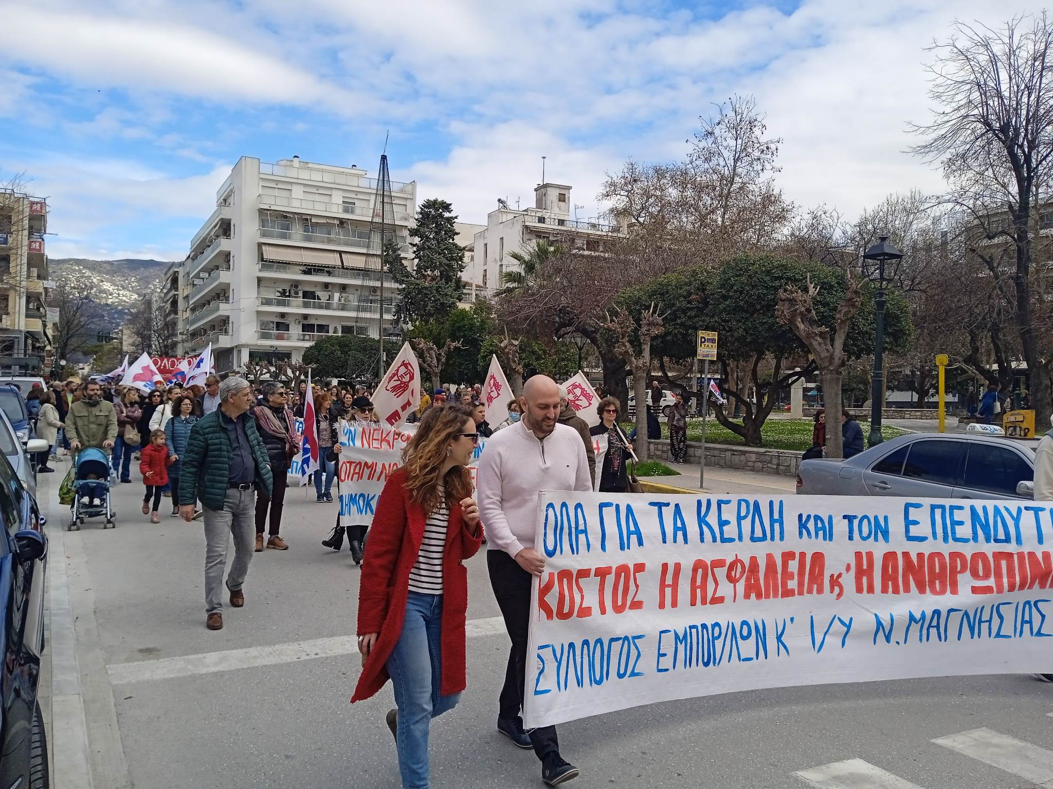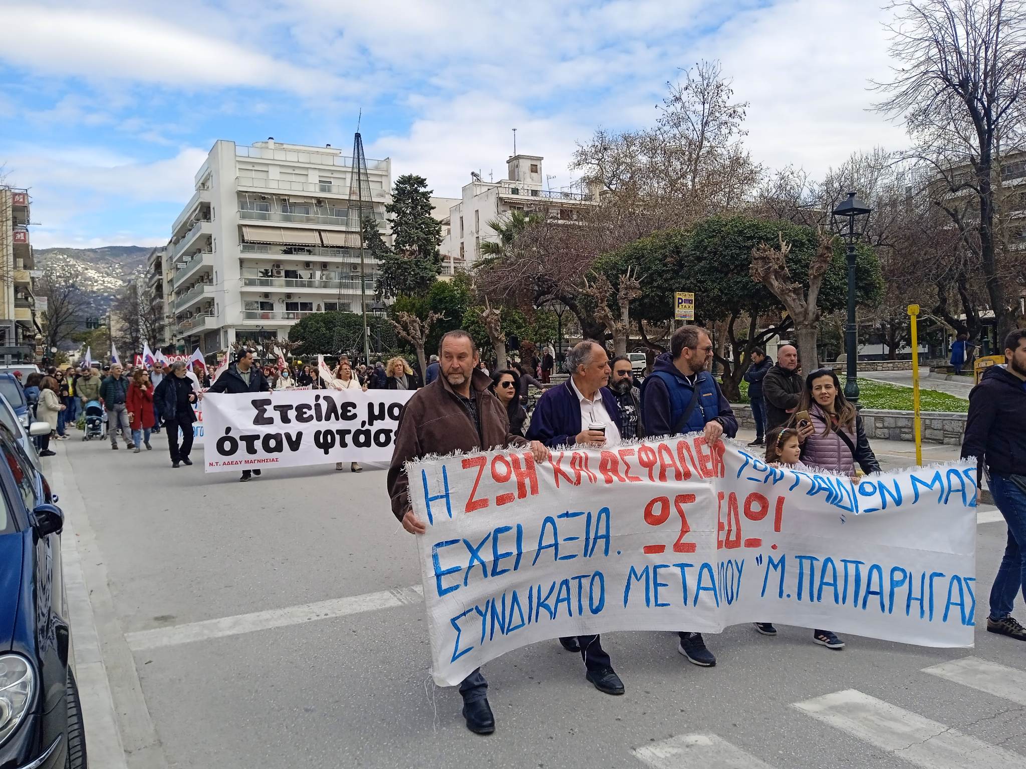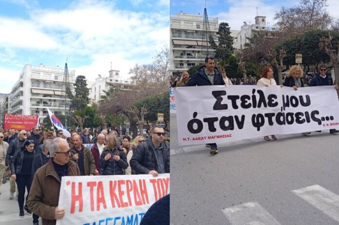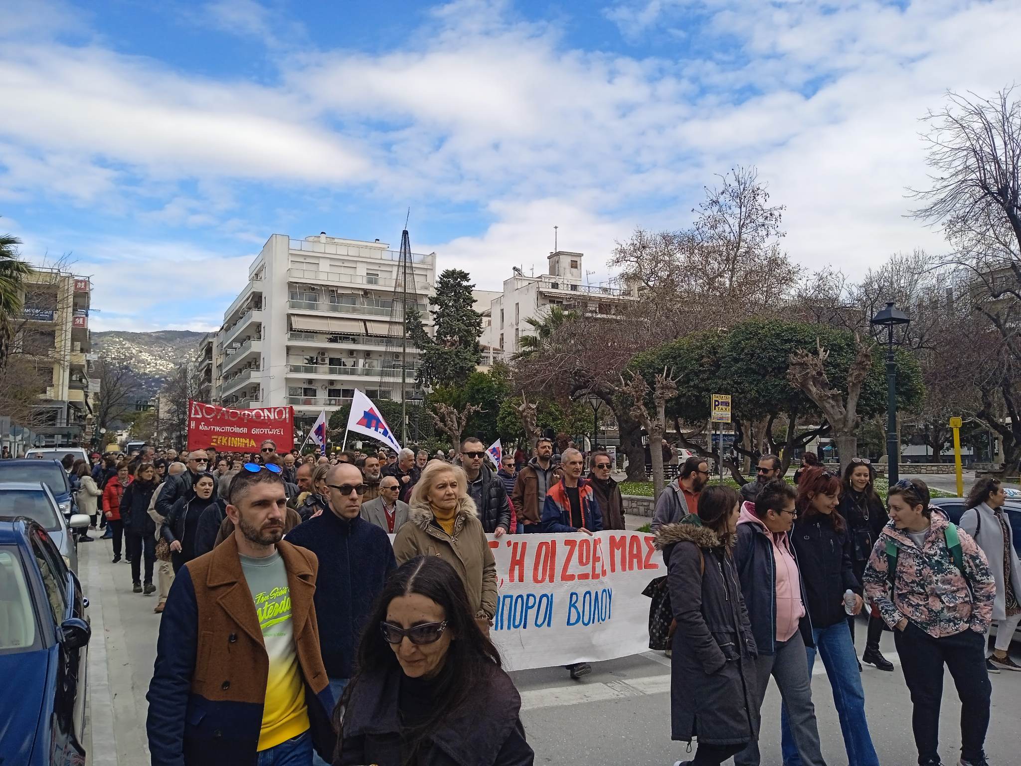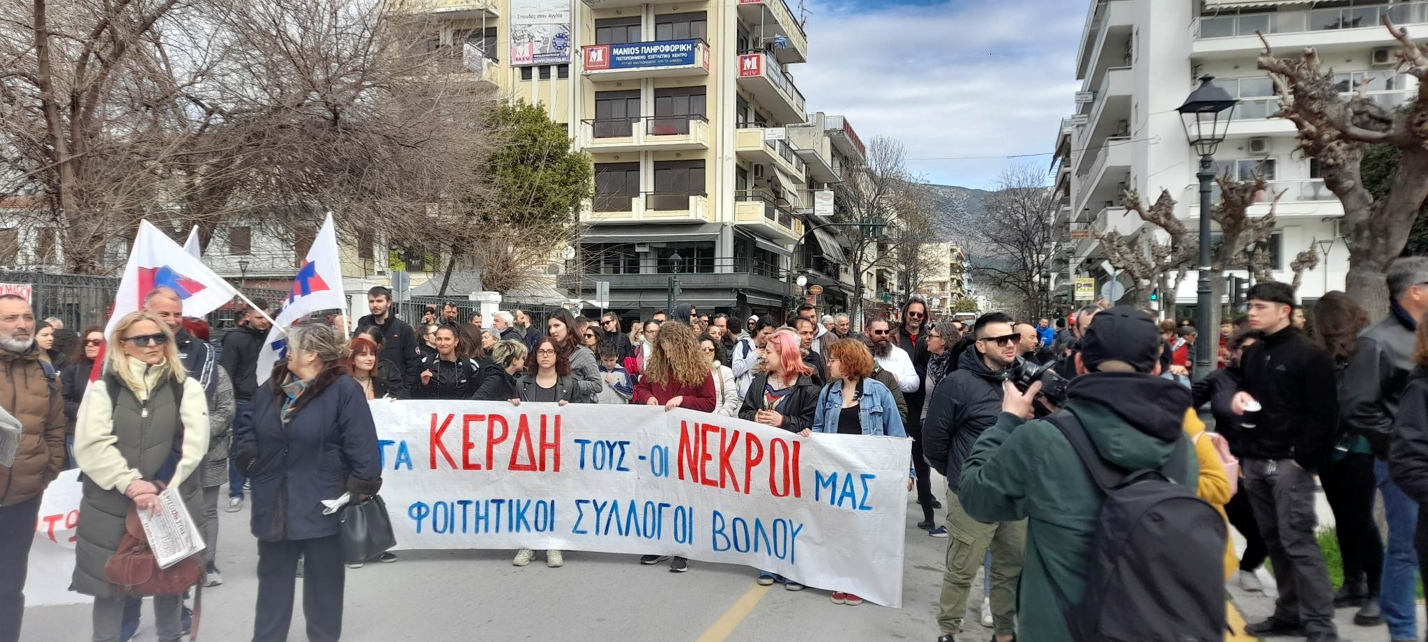 Όπως αναφέρει στο μεταξύ σε ανακοίνωσή του, το Συνδικάτο Μετάλλου, «μαχητική συγκέντρωση και πορεία στους δρόμους του Βόλου πραγματοποίησαν την εργατικά σωματεία, φοιτητικοί σύλλογοι και φορείς της πόλης συνεχίζοντας έτσι τον αγώνα για να μην συγκαλυφθούν οι αιτίες του σιδηροδρομικού εγκλήματος στα Τέμπη και απαιτώντας να ληφθούν άμεσα μέτρα για την προστασία της ζωής του λαού.