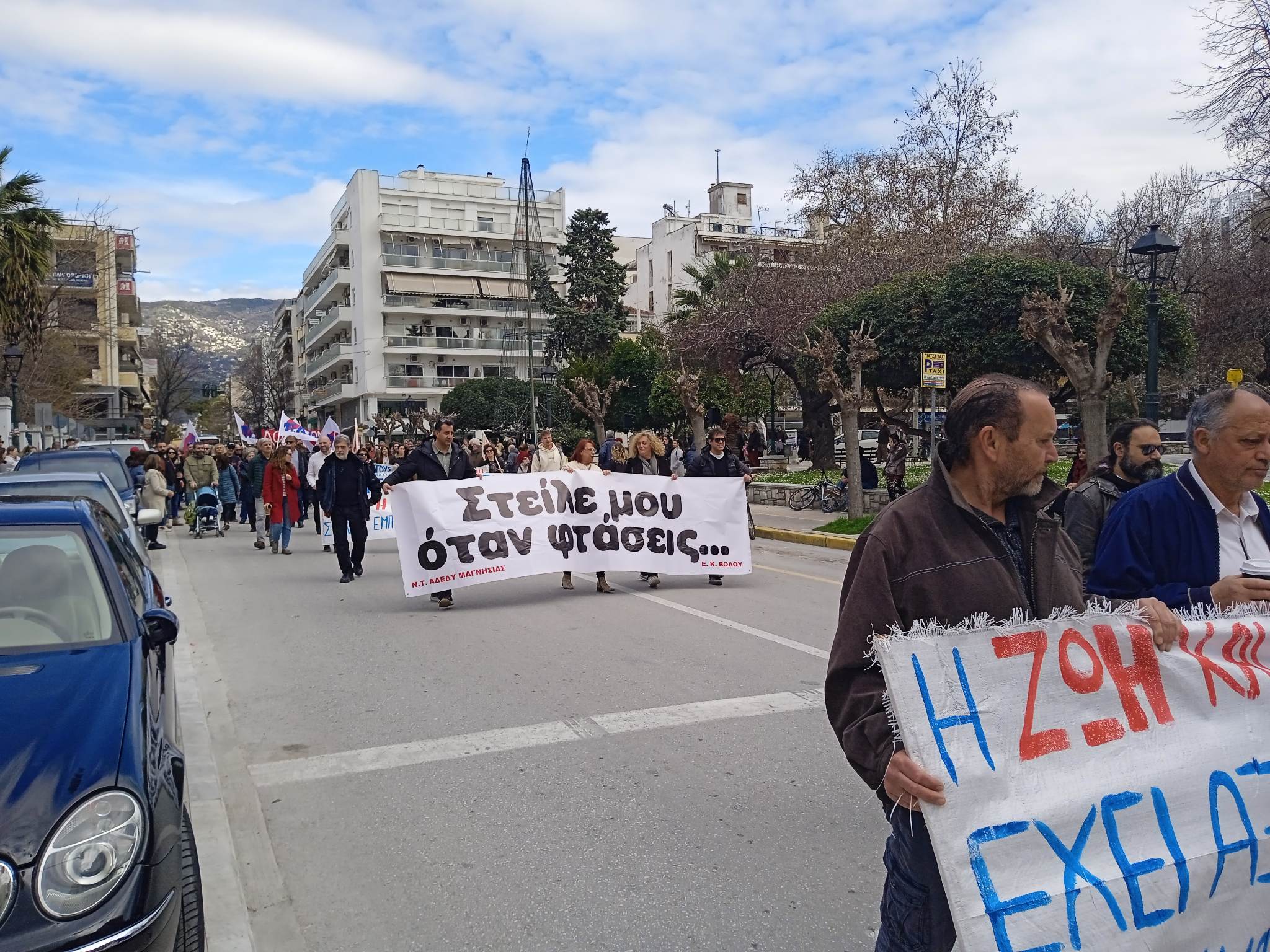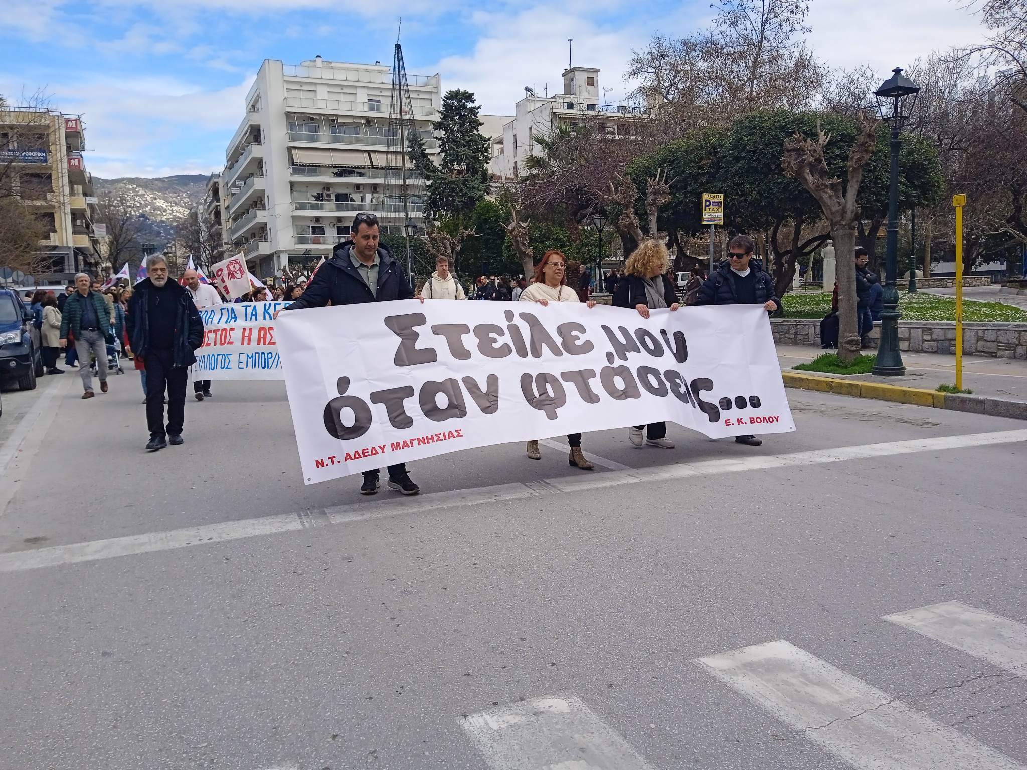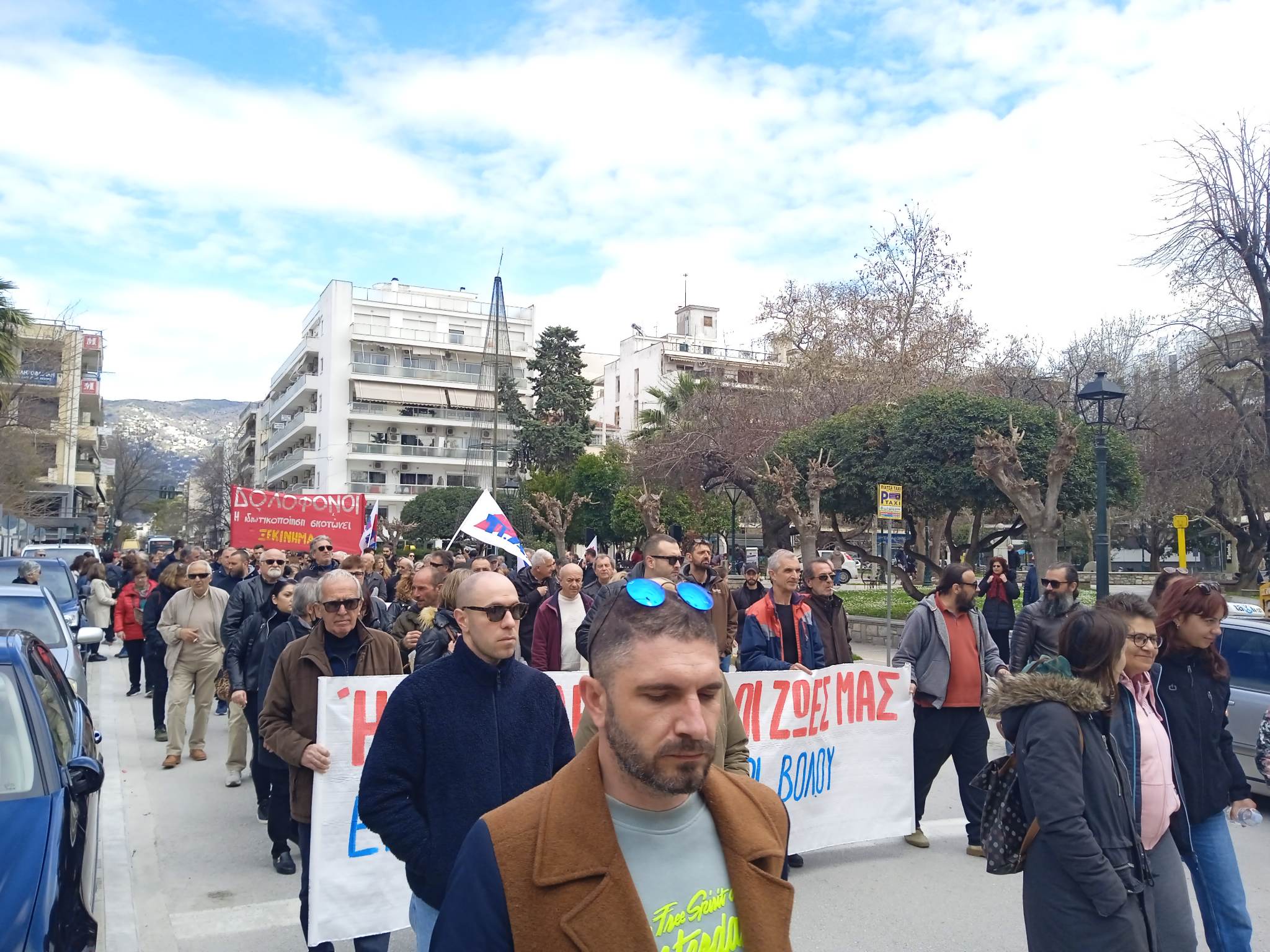 “Ο λαός του Βόλου και της Μαγνησίας δίνει με το σημερινό μας συλλαλητήριο μια ακόμα αποφασιστική απάντηση στις προσπάθειες της κυβέρνησης και όλων των κομμάτων που κυβέρνησαν μέχρι σήμερα τούτο τον τόπο να συγκαλύψουν τις πραγματικές ευθύνες για το προδιαγεγραμμένο έγκλημα στα Τέμπη…