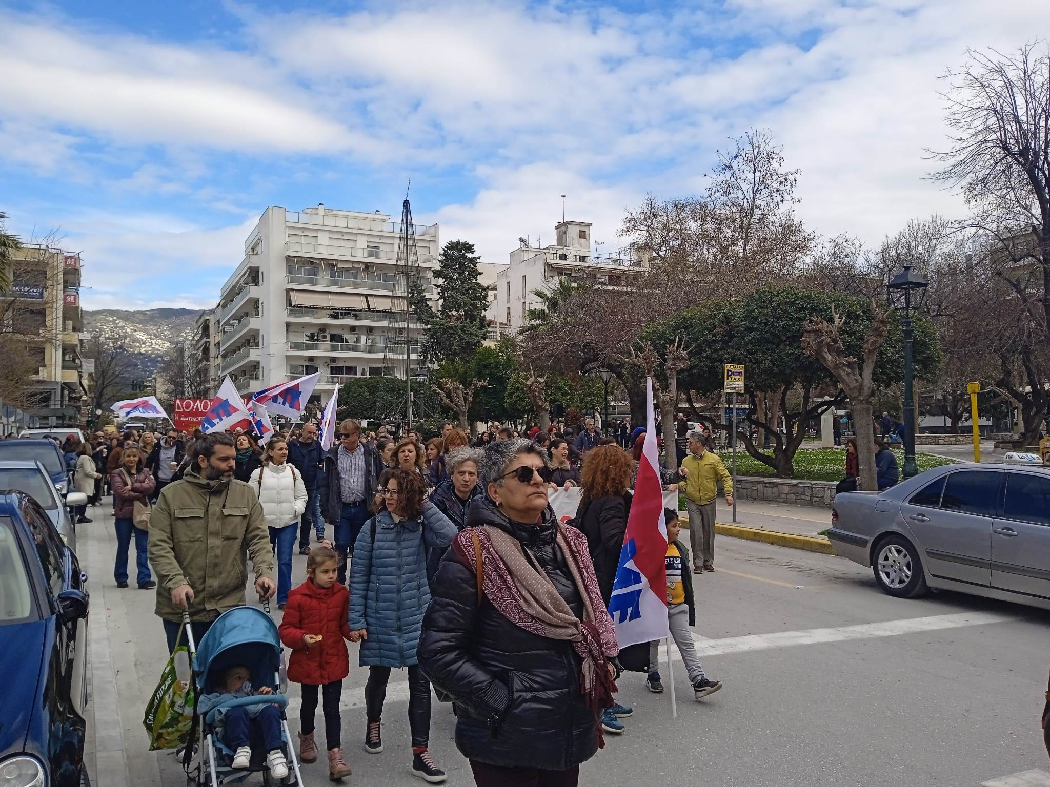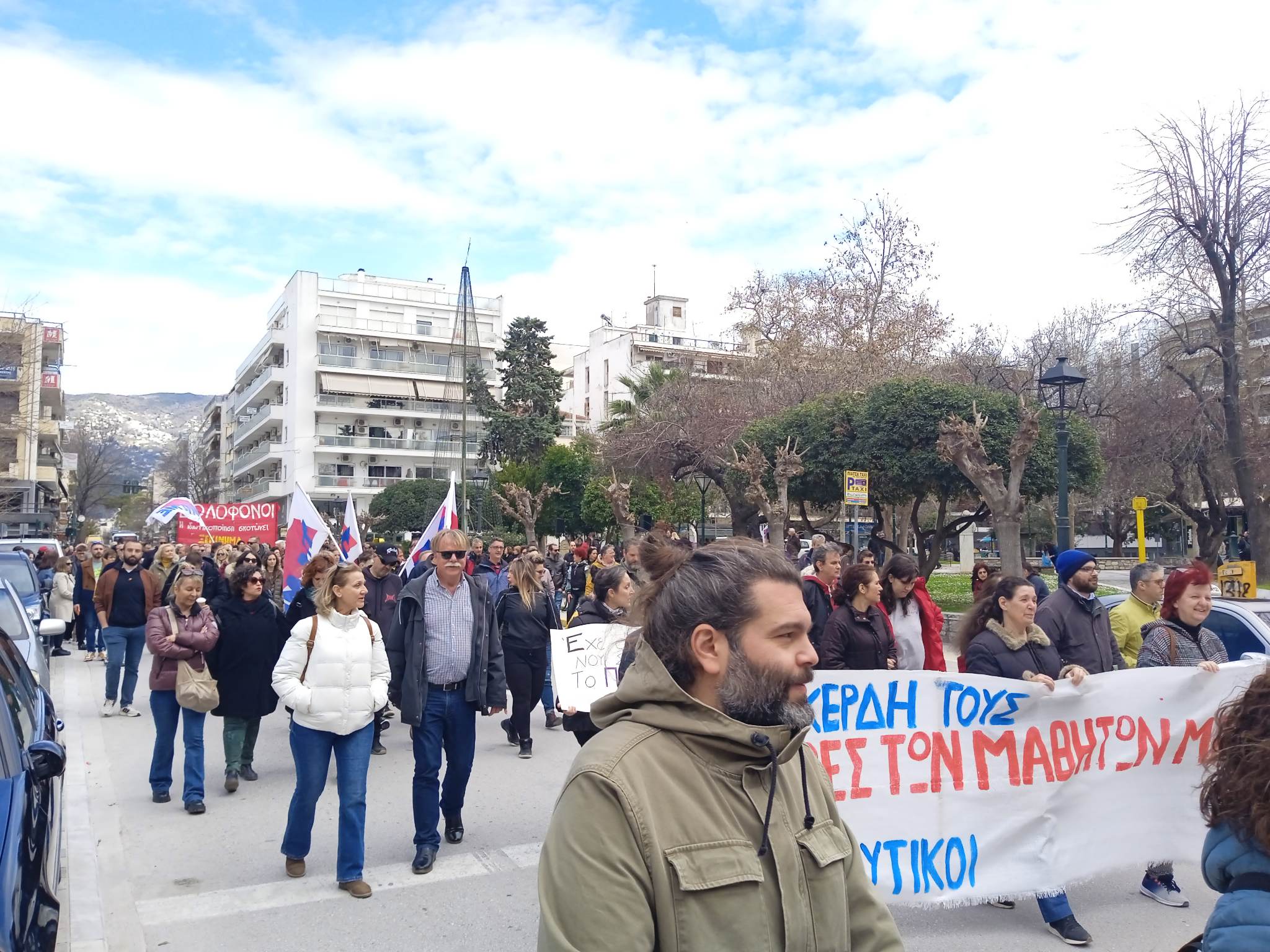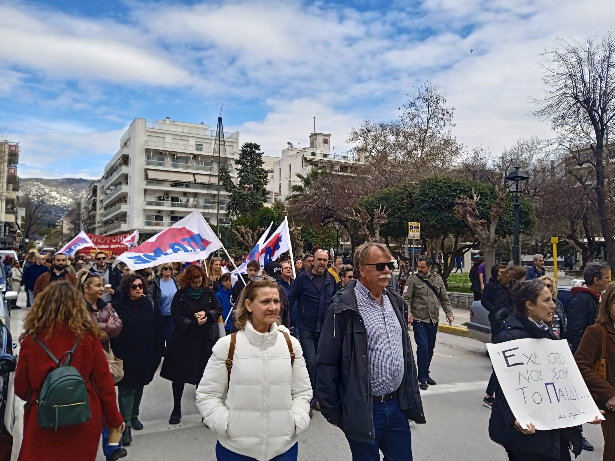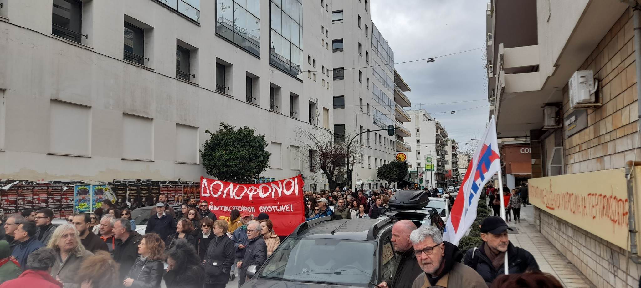 “Ο λαός του Βόλου και της Μαγνησίας δίνει με το σημερινό μας συλλαλητήριο μια ακόμα αποφασιστική απάντηση στις προσπάθειες της κυβέρνησης και όλων των κομμάτων που κυβέρνησαν μέχρι σήμερα τούτο τον τόπο να συγκαλύψουν τις πραγματικές ευθύνες για το προδιαγεγραμμένο έγκλημα στα Τέμπη…