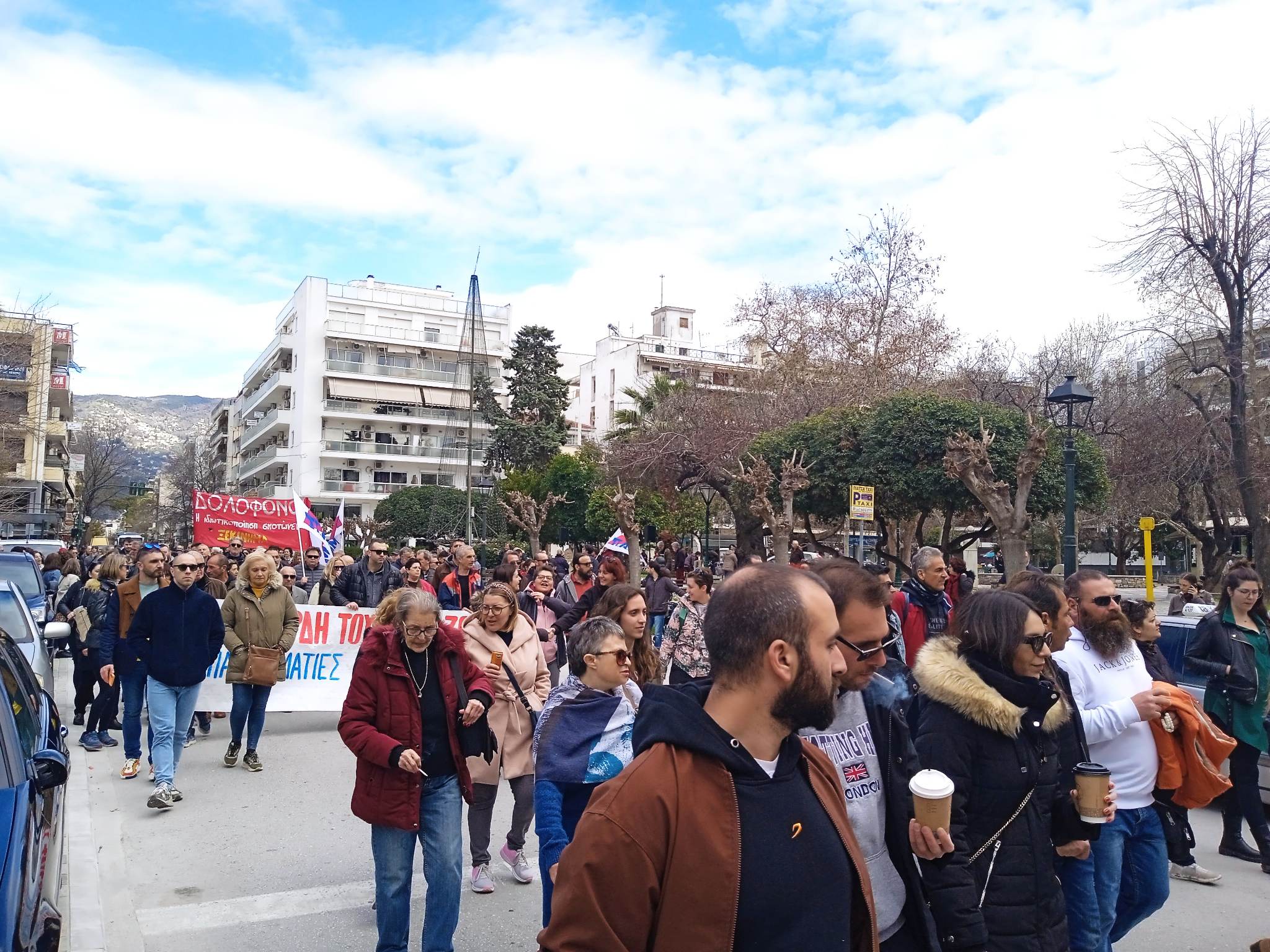 Πλήθος πολιτών κατέβηκε σήμερα στους δρόμους του Βόλου για να διαδηλώσει για την φονική σύγκρουση των Τεμπών, η οποία στοίχισε την ζωή σε 57 συνανθρώπους μας, ενώ μάχη για την ζωή τους δίνουν νέοι άνθρωποι σε Μονάδες Εντατικής Θεραπείας.