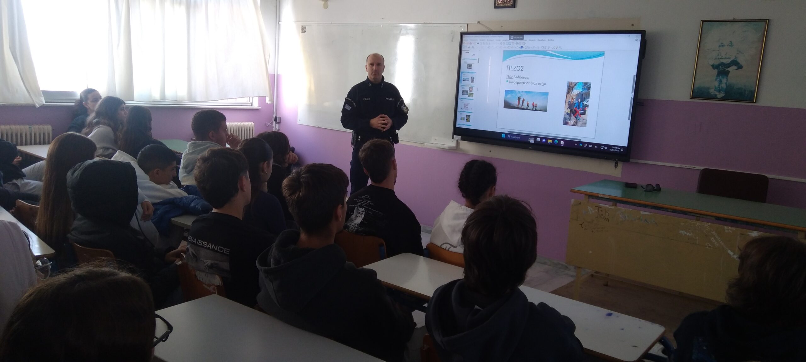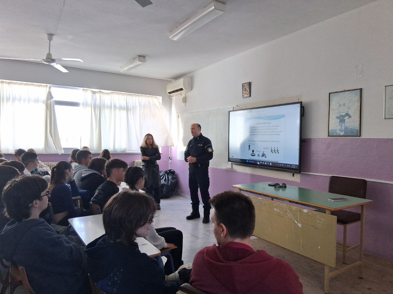 Ο κ.Αρίδας ενημέρωσε τους μαθητές και τις μαθήτριες μας για την σημασία της οδικής ασφάλειας,καλύπτοντας όλο το φάσμα της σωστής συμπεριφοράς μας στο δρόμο ως οδηγοί,συνοδηγοί αυτοκινήτων και μηχανών αλλά και ως ποδηλάτες και πεζοί.