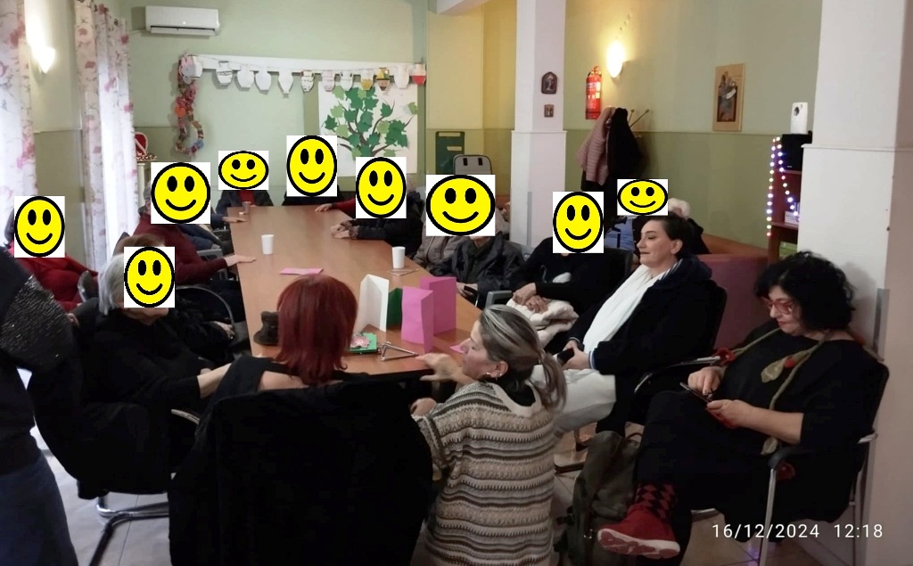 Τον χώρο επισκέφθηκαν επίσης η κ. Χριστίνα Αγριγιάννη μαζί με την καλλιτέχνη- ερμηνεύτρια του έντεχνου τραγουδιού Ηρώ, όπου εκτός από τις θερμές ευχές στους ωφελούμενους και τους εργαζόμενους, τραγούδησαν και οι μελωδίες τους συνέβαλαν στο εορταστικό κλίμα. Συνομίλησαν με κάθε ωφελούμενο ξεχωριστά και τους ευχήθηκαν να είναι γεροί, δυνατοί, να χαμογελούν, γιατί έχουν το πιο σημαντικό στη ζωή, πολλούς φίλους.