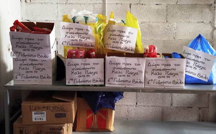 Την Παρασκευή 11 Απριλίου το πρωί, επισκέφτηκαν τις εγκαταστάσεις του Κ.Ε.Δ.Α.Β. μαθητές και μαθήτριες του 6 ου Γυμνασίου Βόλου συνοδευόμενοι από εκπαιδευτικούς του σχολείου τους. Σκοπός της επίσκεψης ήταν να γνωρίσουν το Σύλλογο του «ΕΣΤΑΥΡΩΜΕΝΟΥ» και τη δράση του, αλλά και να προσφέρουν τρόφιμα που είχαν συγκεντρώσει, όπως επίσης και μια οικονομική δωρεά από την πλευρά του Συλλόγου Διδασκόντων και του Συλλόγου Γονέων και Κηδεμόνων.
