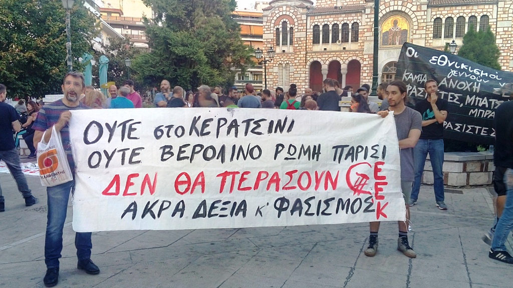 Πολλές δεκάδες αντιφασιστών, μελών κομμάτων της εξωκοινοβουλευτικής Αριστεράς και συλλογικοτήτων άρχισαν να συγκεντρώνονται λίγο μετά τις 6 στην Πλατεία Αγ. Νικολάου στο Βόλο, ενώ λίγο μετά τις 7.30 ξεκίνησαν πορεία στους δρόμους της πόλης, φωνάζοντας συνθήματα κατά της Χρυσής Αυγής και του φασισμού.