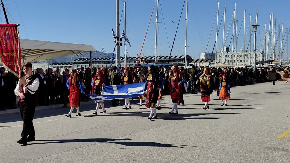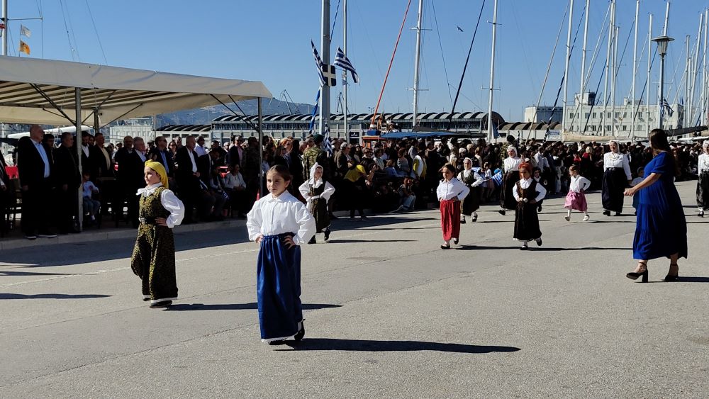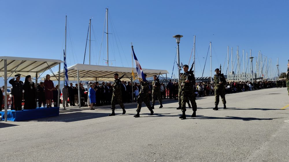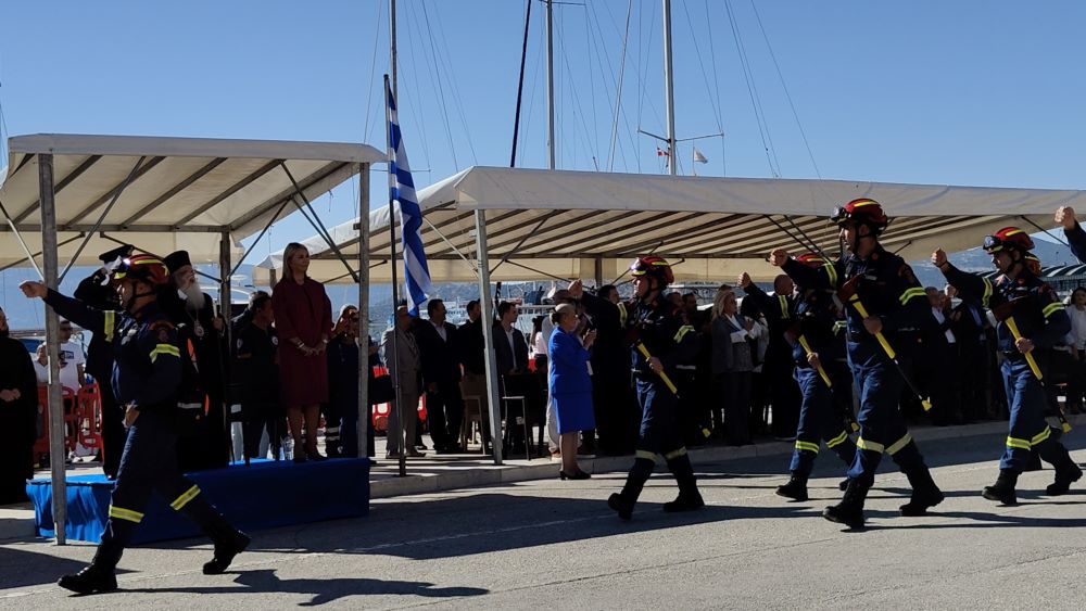 Πλήθος κόσμου βρέθηκε πριν λίγο στην παραλία του Βόλου, προκειμένου να τιμήσει την Επέτειο της 28ης Οκτωβρίου 1940, με την πραγματοποίηση της καθιερωμένης παρέλασης, μελών πολιτιστικών, συλλόγων, μαθητών, στρατιωτικών, ενώ φέτος για πρώτη φορά συμμετείχε και ομάδα εξειδικευμένων δασοκομάντος της Πυροσβεστικής.