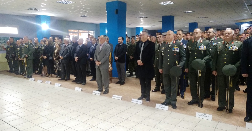 Η τελετή παράδοσης – παραλαβής, έγινε σε στεγασμένο χώρο, λόγω του βροχερού καιρού, παρουσία του νέου διοικητή της 1ης Μεραρχίας Πεζικού, υποστράτηγου Σάββα Κολοκούρη, του βουλευτή Μαγνησίας του ΚΚΕ Κώστα Στεργίου και στρατιωτικών αρχών, αλλά και του παραδίδοντος διοικητή της 1ης ΤΑΞ.Α.Σ., υποστράτηγου Γιώργου Μαντζουράνη. Επίσης παρέστησαν ο θεματικός αντιπεριφερειάρχης Κώστας Χαλέβας, και οι διοικητές των Σωμάτων Ασφαλείας.
