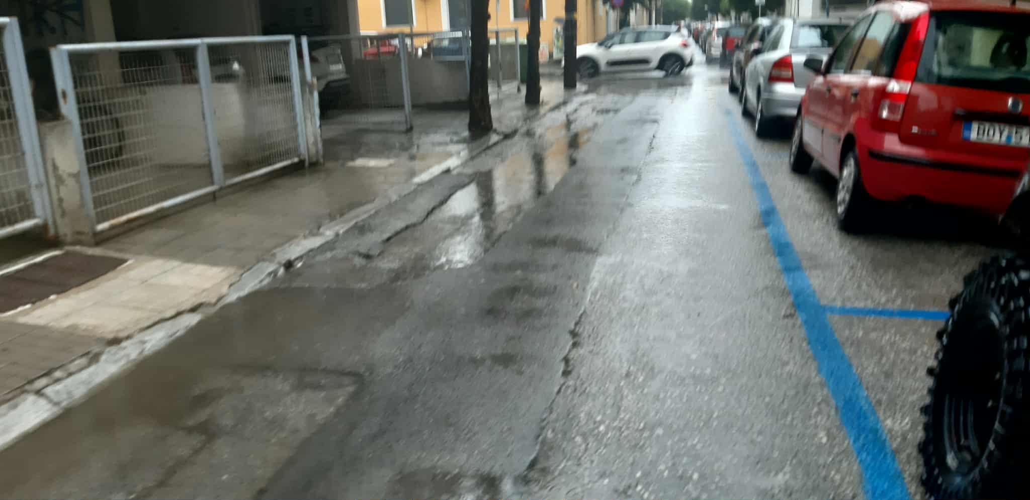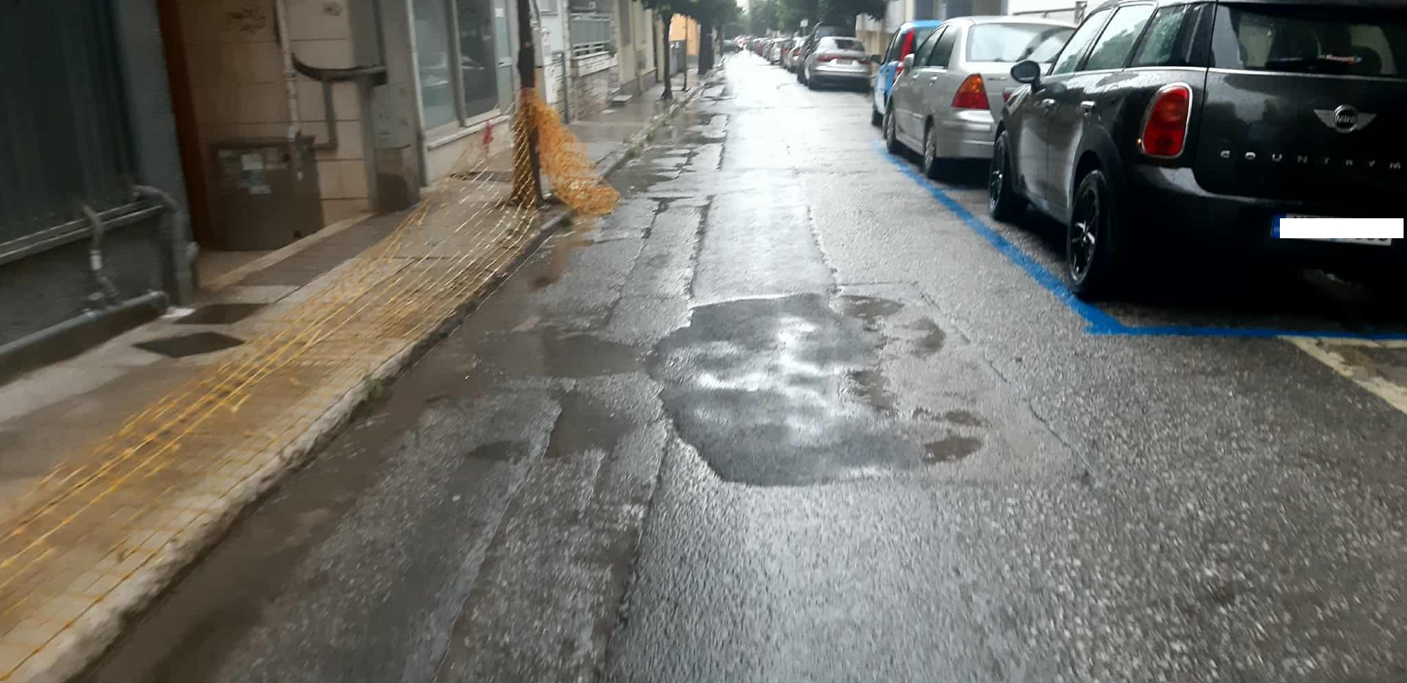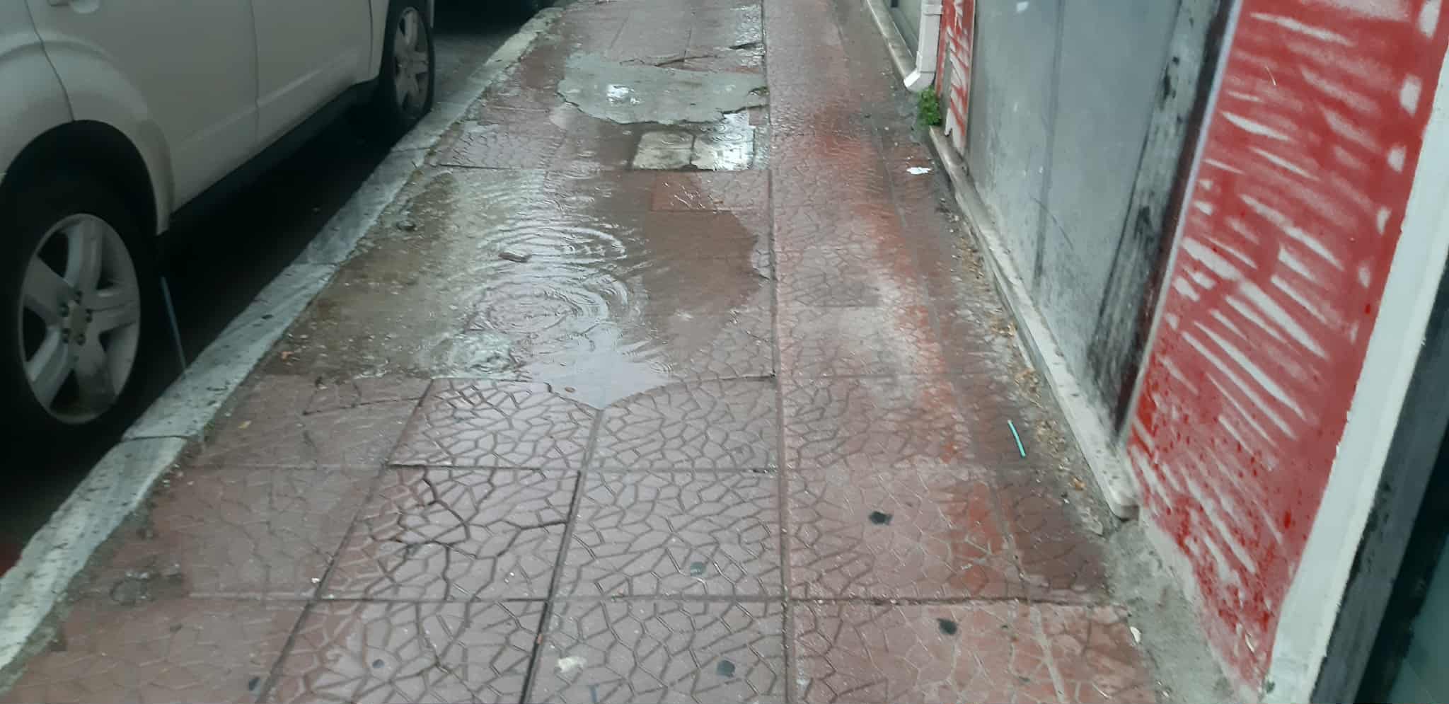 Με την πρώτη βροχή του φθινοπώρου και οι δρόμοι αλλά και τα πεζοδρόμια στο κέντρο του Βόλου μετατράπηκαν σε μικρές λίμνες. Οι πεζοί αδυνατούν να περπατήσουν στα περισσότερα πεζοδρόμια, καθώς λείπουν από πολλά σημεία οι πλάκες, ενώ σε άλλα σημεία είναι ξεκολλημένες με αποτέλεσμα να συγκεντρώνουν νερό από κάτω και στο πρώτο βήμα οι πεζοί να γίνονται μούσκεμα. Σε ότι αφορά στους δρόμους, τα μπαλώματα που υπάρχουν παντού έχουν δημιουργήσει μικρές λίμνες με αποτέλεσμα να μην μπορούν να περπατήσουν οι πεζοί ούτε από τον δρόμο χωρίς να βραχούν. Κι όλη αυτή η εικόνα είναι από το κέντρο του Βόλου…