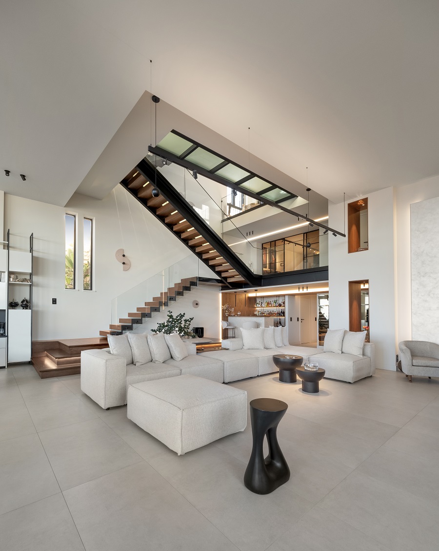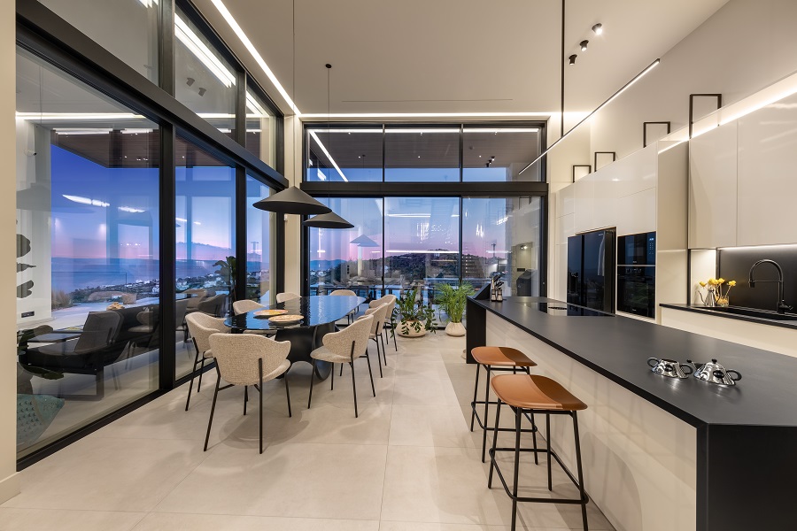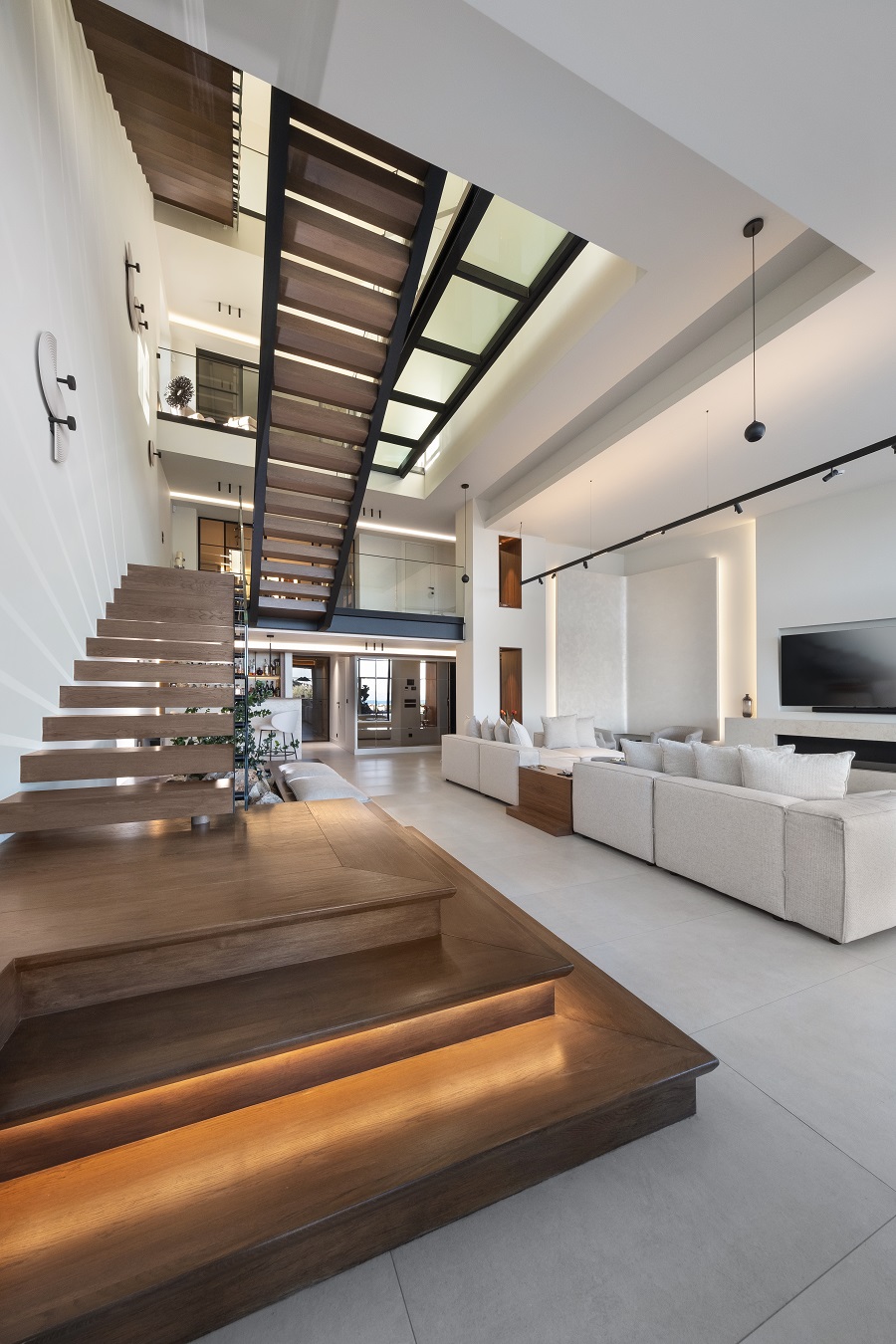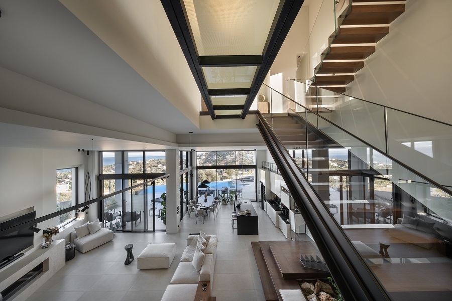Τα μεγάλα αυτά ανοίγματα δημιουργούν μία διαφάνεια προς το νότο και επιτρέπουν στο φως να διαχέεται άπλετο, αγκαλιάζοντας κάθε γωνία του χώρου.