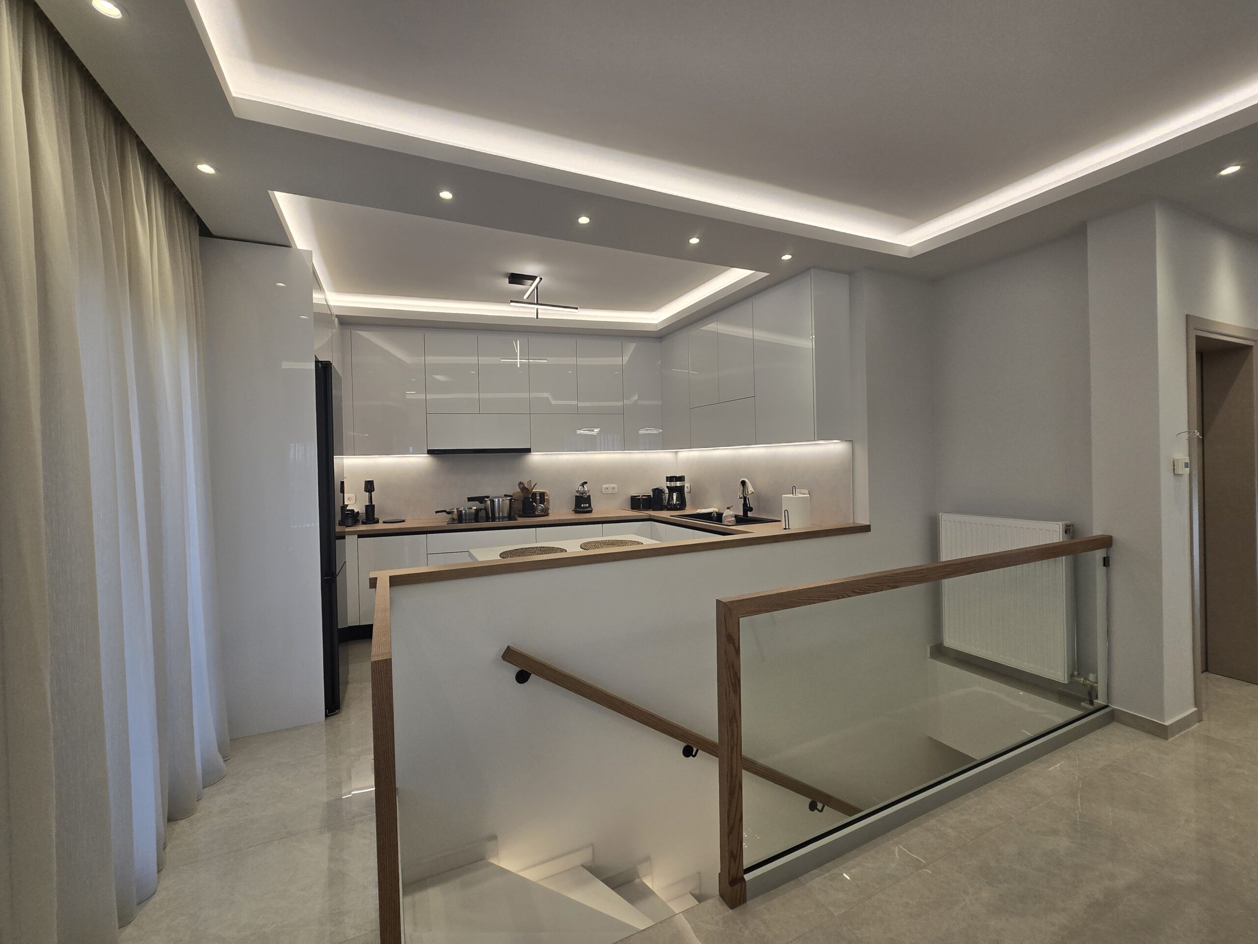 Η κατοικία συνολικά διακρίνεται για τη ροή φωτός, την καθαρότητα των γραμμών και τις λεπτομέρειες που κάνουν τη διαφορά — μια ολοκληρωμένη πρόταση σύγχρονης πολυτέλειας, όπου ο σχεδιασμός της Σοφίας Αδάμ αναδεικνύεται σε κάθε γωνιά.