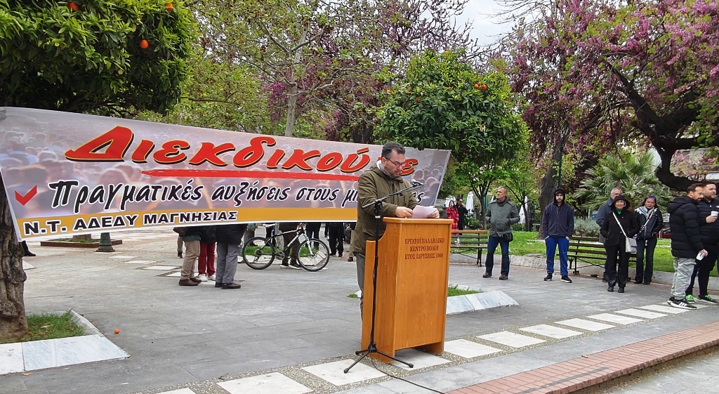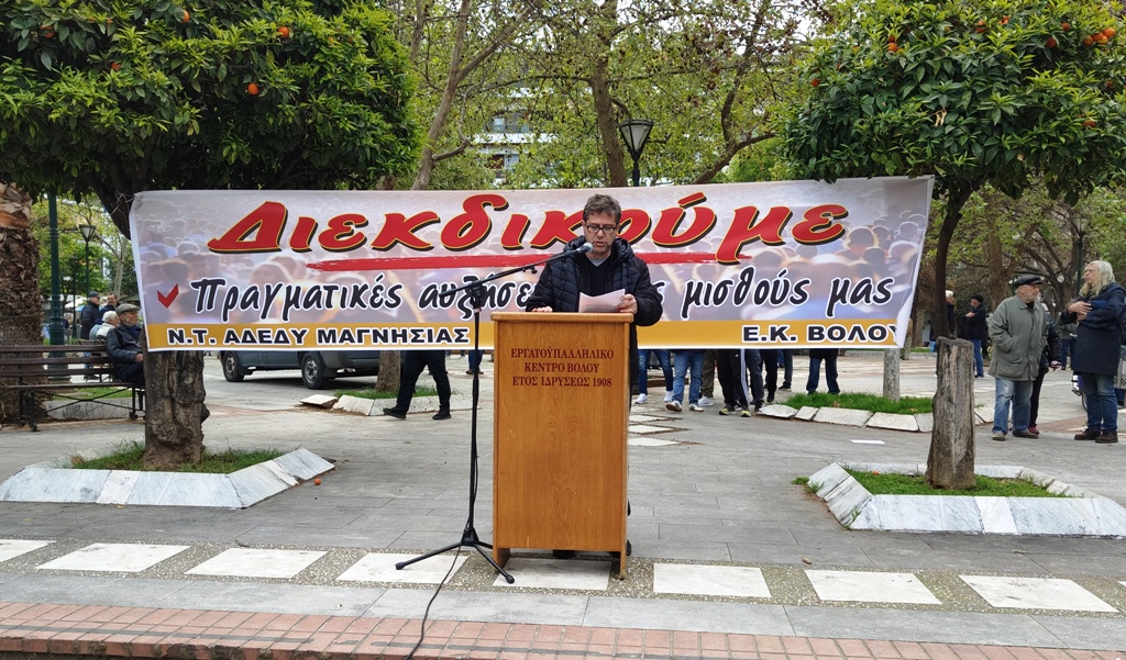Στους συγκεντρωμένους μίλησαν ο πρόεδρος του Νομαρχιακού Τμήματος της ΑΔΕΔΥ Φίλιππος Κωνσταντινίδης και ο πρόεδρος του Εργατοϋπαλληλικού Κέντρου Βόλου Θανάσης Παπαδημόπουλος, που αναφέρθηκαν στην ακρίβεια και το στεγαστικό πρόβλημα που μαστίζουν τους εργαζόμενους, αλλά και στο αίτημα για Συλλογικές Συμβάσεις Εργασίας και για δώρα στο Δημόσιο.