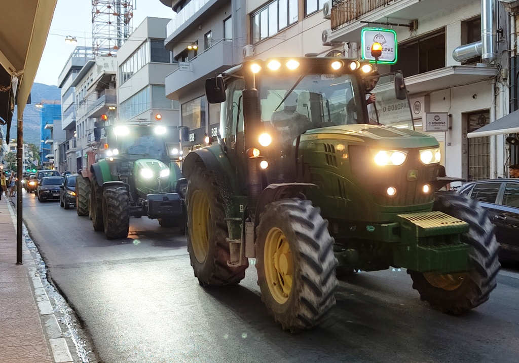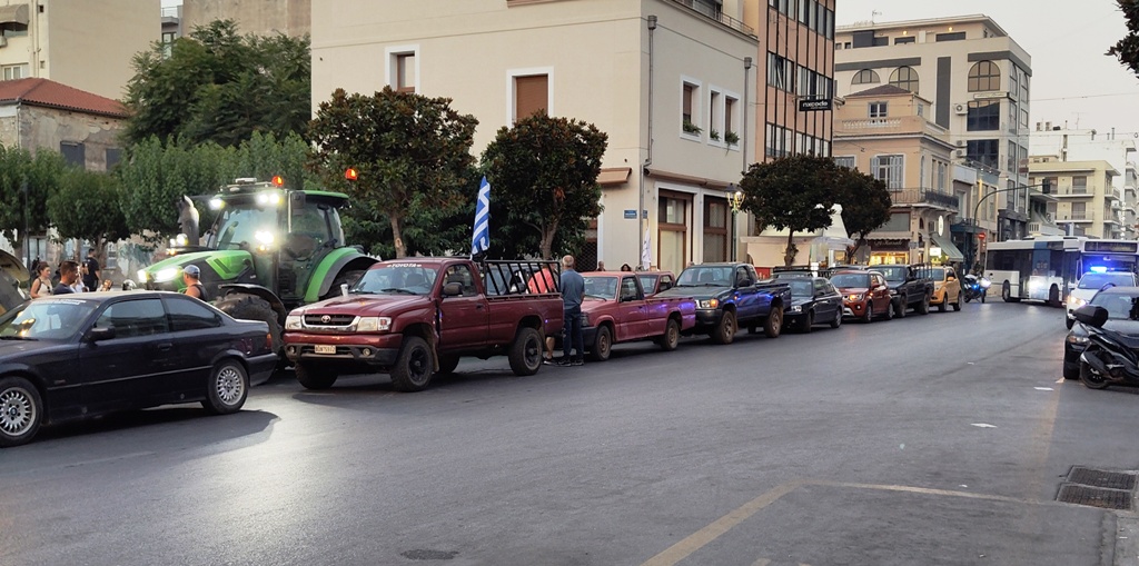Στην κεφαλή της πορείας είχαν μπει μερικά τρακτέρ και ακολουθούσαν δεκάδες αγροτικά και Ι.Χ. αυτοκίνητα, τα οποία στάθμευσαν σε διπλή σειρά στην Πλ. Πανεπιστημίου, αφήνοντας, με τις οδηγίες της Τροχαίας μια λωρίδα στην οδό Δημητριάδος για να εξυπηρετείται η κυκλοφορία των αυτοκινήτων που ήταν μεγάλη.