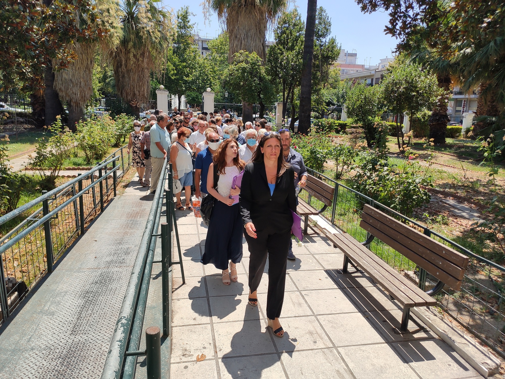 Η επικεφαλής της «Πλεύσης Ελυθερίας», συνοδεύεται από δεκάδες κατοίκους του χωριού και έφτασε στα Δικαστήρια λίγο πριν τις 12.30 το μεσημέρι. Αφού έγινε μια μικρή συγκέντρωση με δηλώσεις στην Πλατεία Ελευθερίας, η κα Κωνσταντοπούλου, συνοδευόμενη από τους κατοίκους του χωριού κατευθύνθηκε στο γραφεία του προϊσταμένου της Εισαγγελίας Πρωτοδικών Βόλου, όπου καταθέσει τη μήνυση που υπογράφουν πάνω από εκατό κάτοικοι του χωριού.